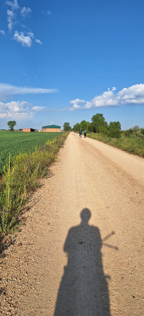 Añado más fotos de la etapa que he hecho en 2024 porque sigo considerando que andar 36 km es un absurdo. Por muy llana que sea, los pies sufren muchísimo y me organicé de forma que andaba menos de 20 km diarios. En realidad, desde Carrión de los Condes hasta Mansilla de las Mulas, hay 74 km. y lo dividí en 5 etapas. Pero una de ellas fue un desvío que no debo considerarlo como etapa del camino francés porque no lo es. En 2014, saliendo de Sahagún me fui a Galleguillos de Campos y no recuerdo dónde acabe al día siguiente pero creo que fue en MANSILLA DE LAS MULAS, aunque hay más kilómetros aún. Recuerdo que fue muy dura esa etapa. En esta ocasión desde Galleguillos de Campos llegué a Bercianos del Real Camino, haciendo tan solo unos 15 km.