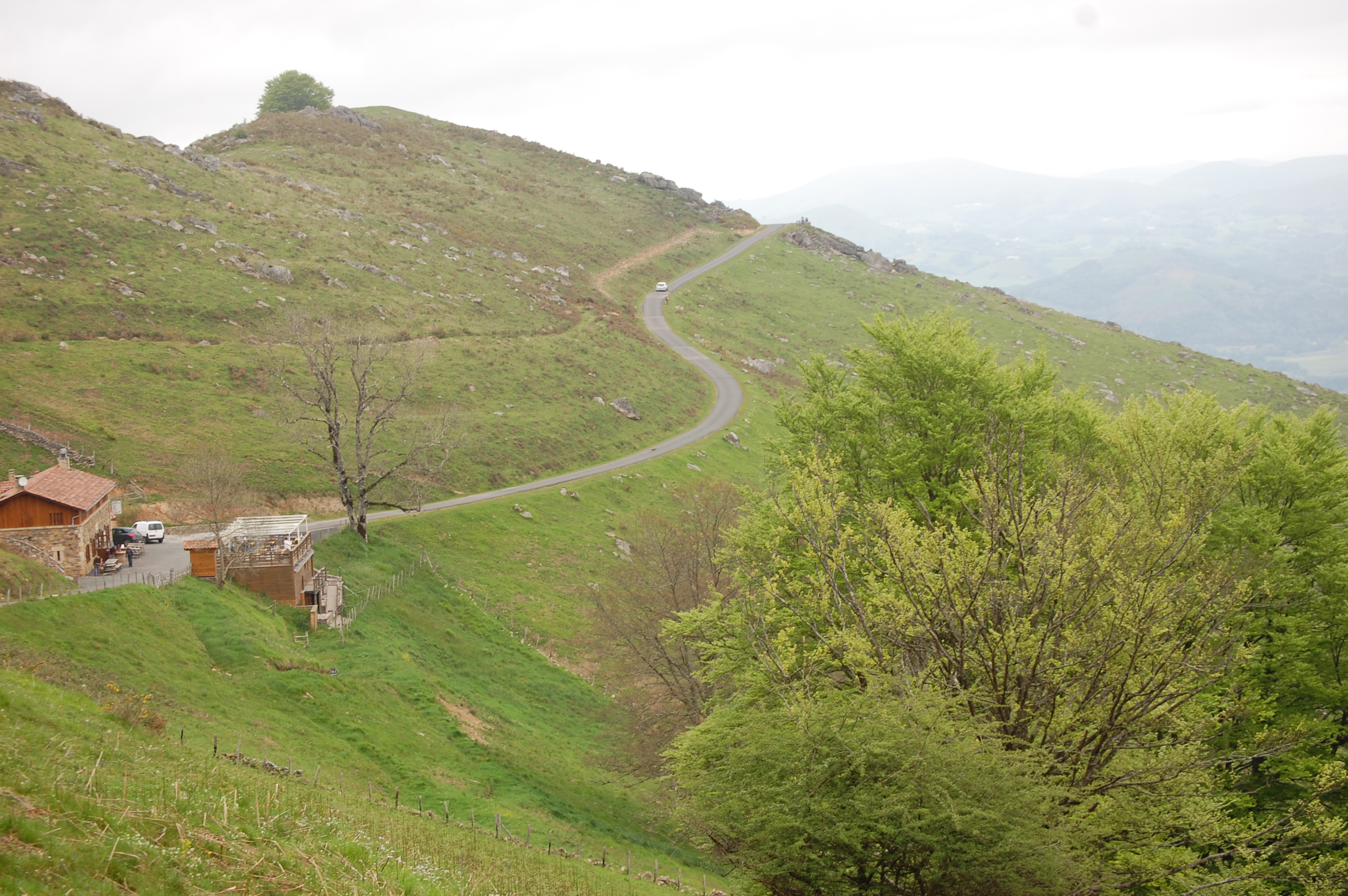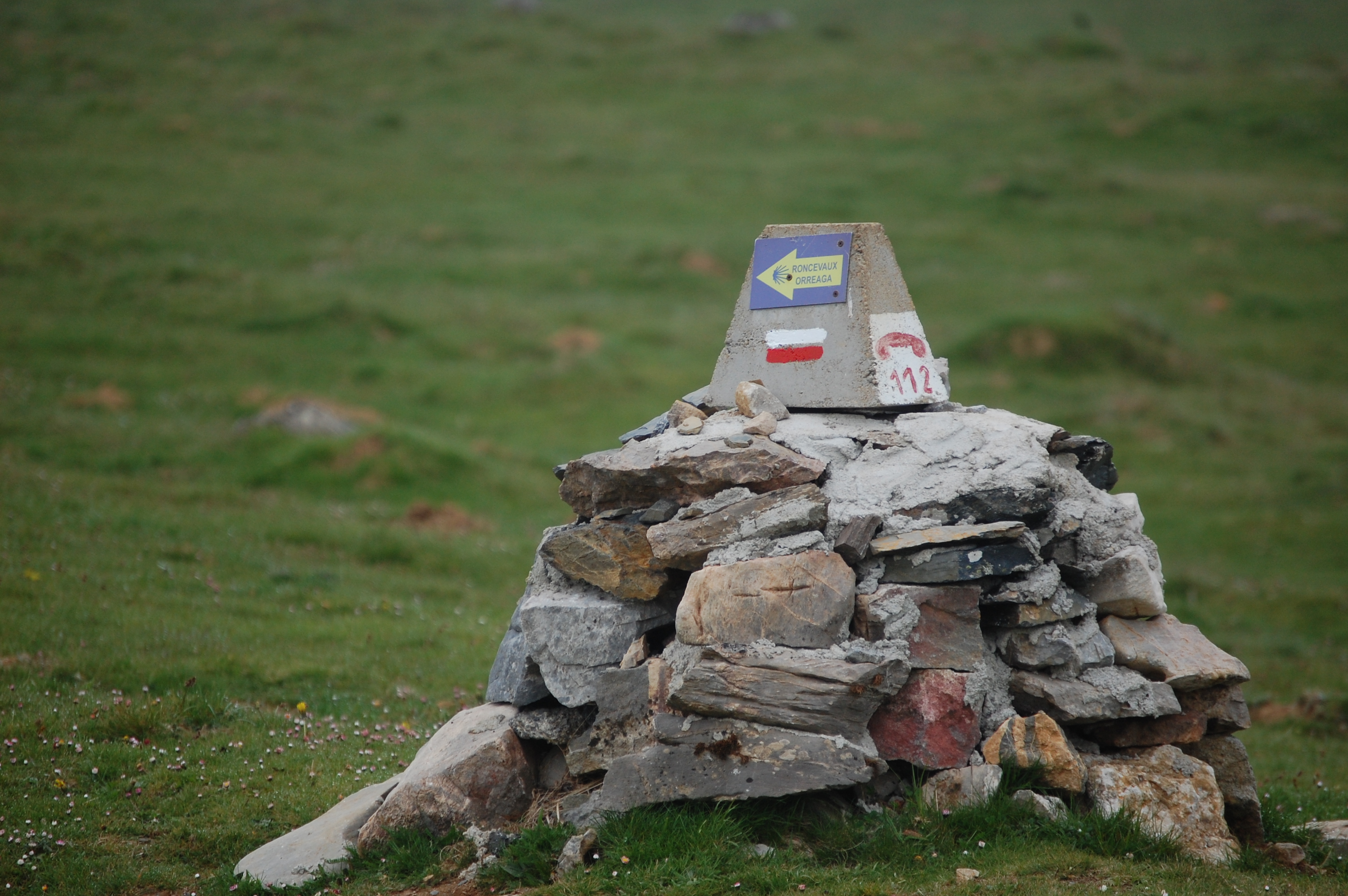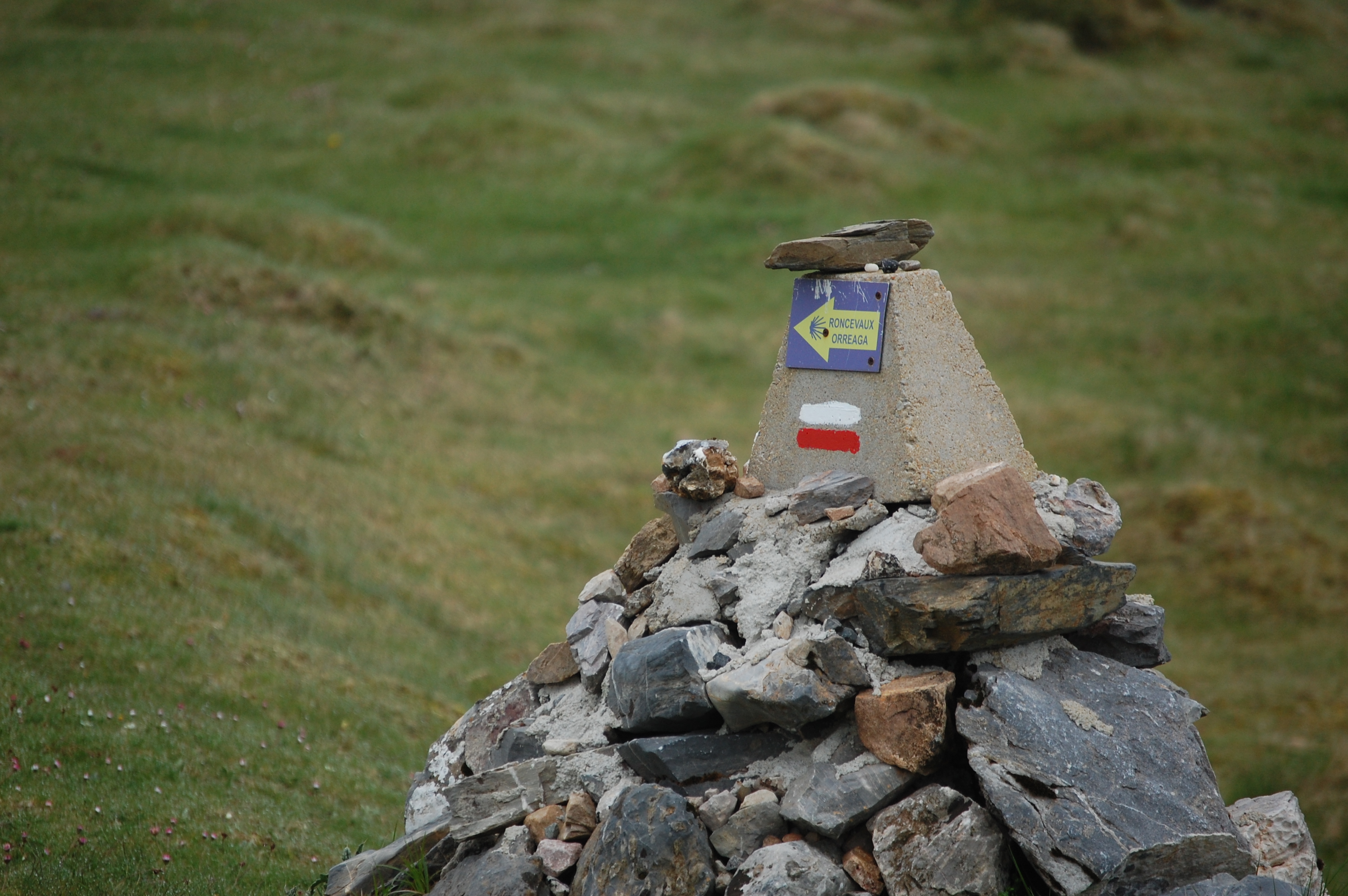Antes de llegar al punto de descenso, hay una opción muy recomendable a seguir. Si ha llovido o está el tiempo como para llover, mejor desviarse a la derecha y seguir las indicaciones del GR-12 para descender menos vertiginosamente y por carretera secundaria mayoritariamente. Este camino opcional nos acerca a la Iglesia de Ibañeta, y más adelante, en 500 m. estaremos en Roncesvalles. Por la vertiente que nos marca como «camino», corremos el riesgo de caer o hacernos una torcedura porque el firme es muy rocoso e inestable. La cuestión es que por el camino habitual son 6 km y por el GR-12 son 10km.