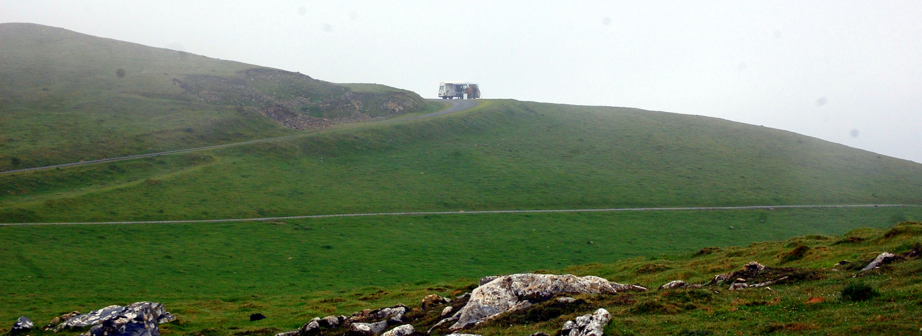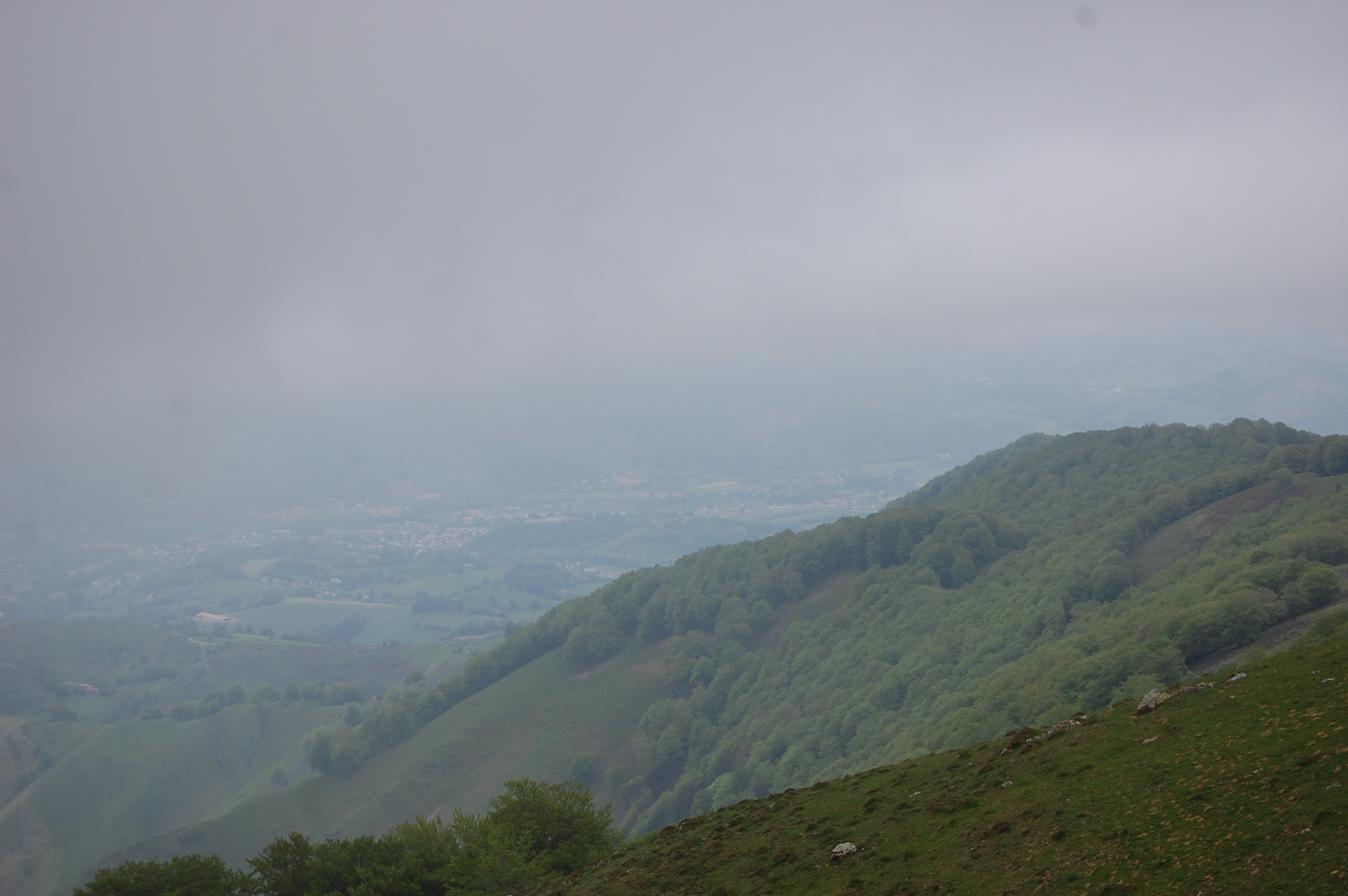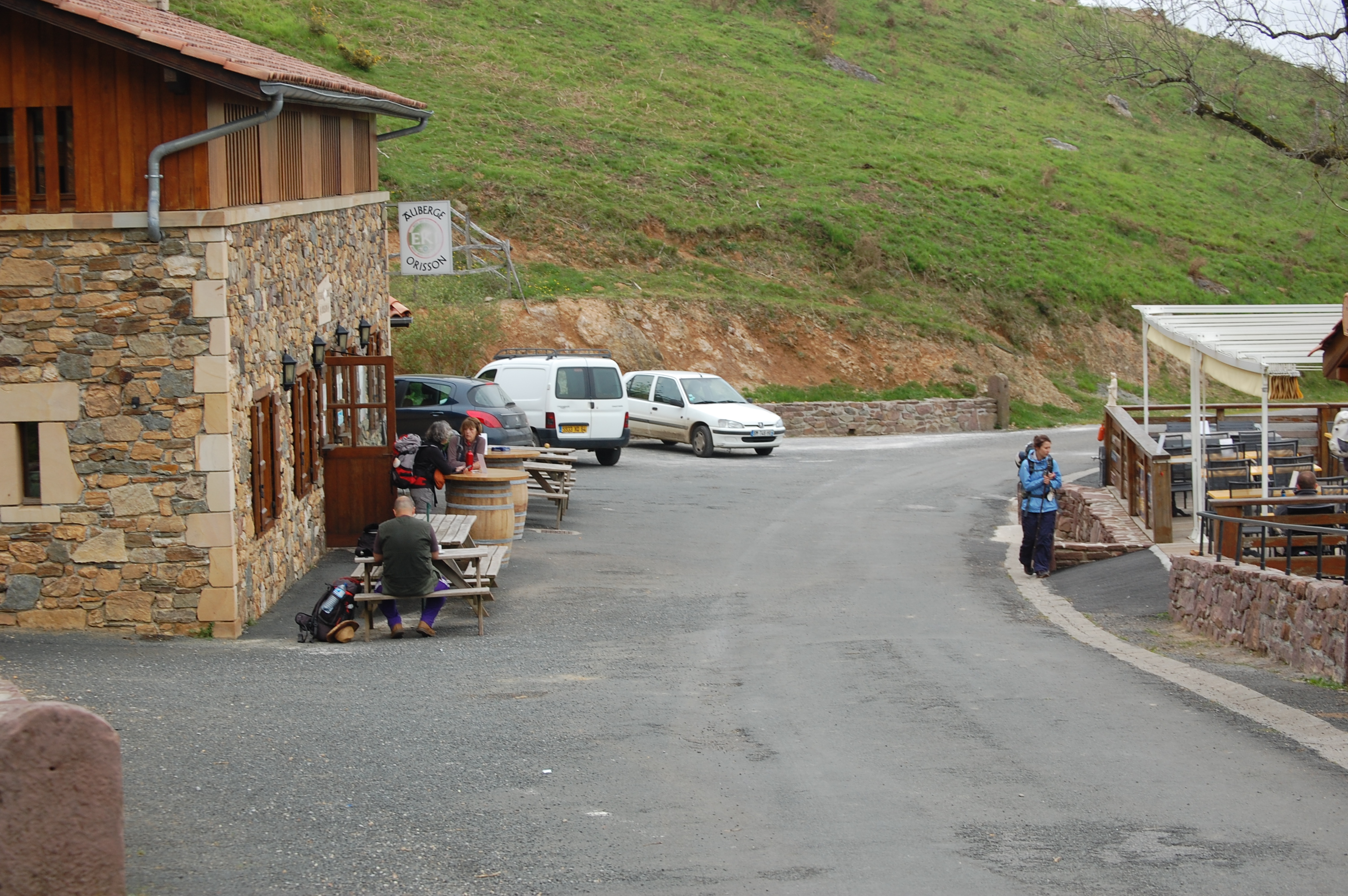 Este enorme panel lo encontramos a la derecha cuando ya llevamos subiendo por un camino semi asfaltado más de 11 Kilómetros. En caso de que estuviera » CERRADO», nos obligan a seguir por carretera, cosa que no me ha pasado aún nunca porque, en primer lugar, suelo consultarlo en Saint Jean Pied de Port antes de iniciar la etapa (lo cierran en caso niebla «espesa») y porque en Mayo suele hacer un tiempo mejor y no lo cierran casi nunca.