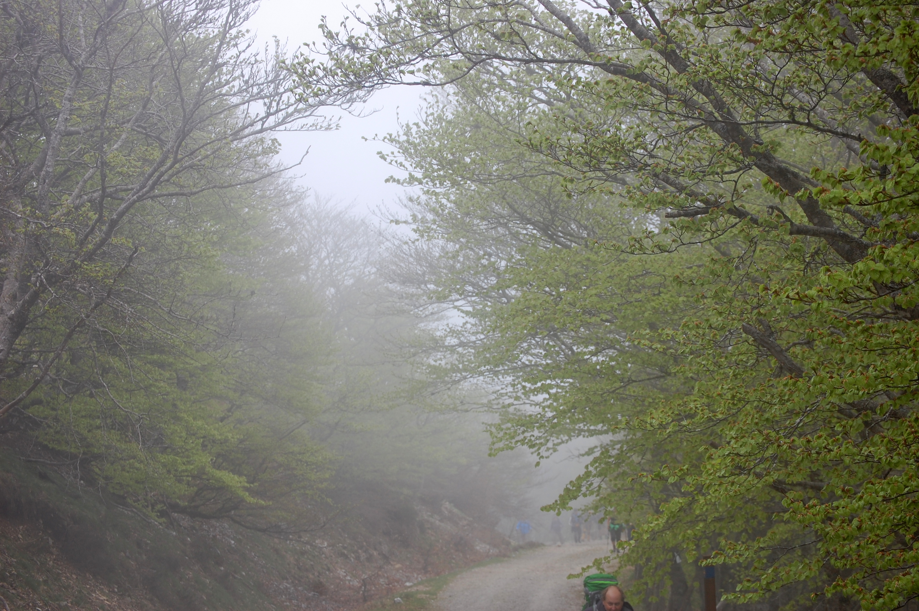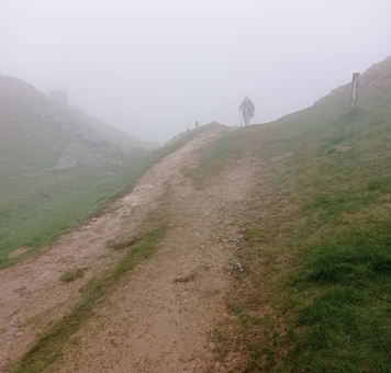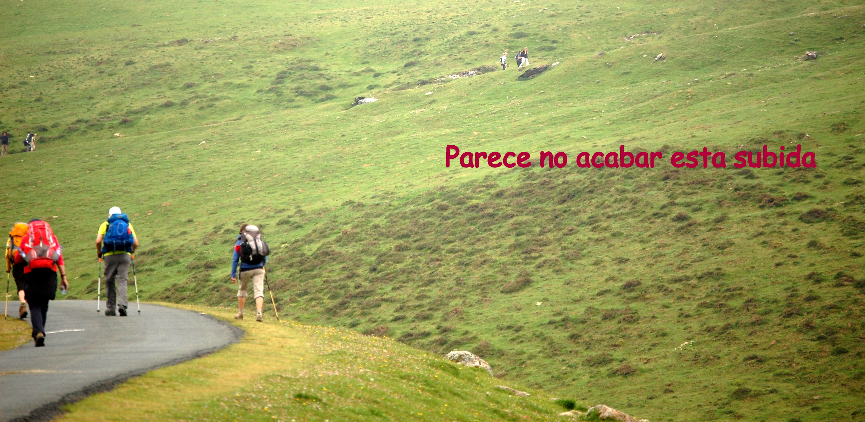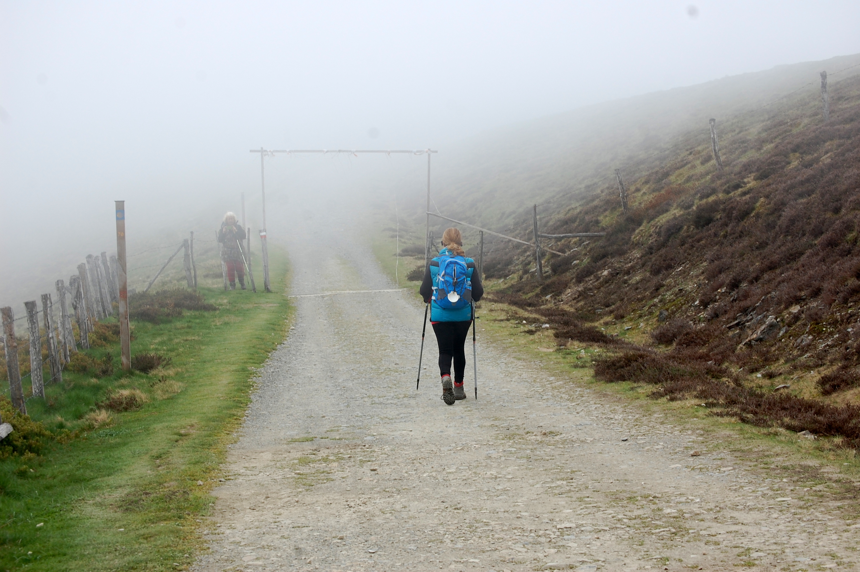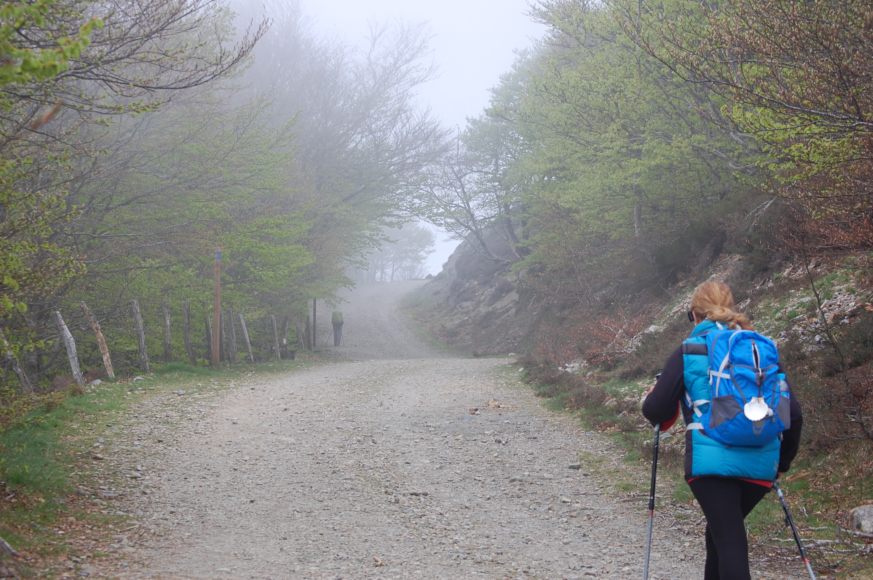 Imágenes de la etapa en 2014. Acompañada por mi amiga JULI, incondicional peregrina con la que tuve el privilegio de disfrutar del momento que recordaremos siempre con muchísima ilusión, nostalgia y cariño. Fue un día del mes de Mayo de 2014, un día que tuvimos niebla pero que no nos impidió hacer la etapa, porque estaba abierto el paso, además tuvimos la suerte de encontrar la furgoneta/bar para comprar algo de comer para seguir camino. Salimos a las 8h y llegamos a Roncesvalles pasadas las 15h. Éramos más jóvenes. Ahora, he de reconocer que no podría repetirlo. Mi última vez fue en 2022 y las fotos están más abajo. Como siempre digo, UNA IMAGEN VALE MÁS QUE MIL PALABRAS.
