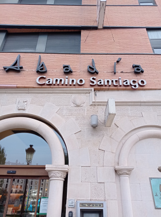 Una vez sobrepasado el casco histórico, sigo camino en dirección a la salida de peregrinos que deberán hacer ellos mañana. En mi caso, me quedo en Hotel Abadía Camino de Santiago, como cada año que pernocto en esta maravillosa Ciudad. Tengo una buena amiga en este Hotel, Belén. Además es una gran escritora y siempre solemos quedar para tomar algo y ponernos al día de nuestras cosas. Este sencillo hotel, con un trato amable con sus clientes por parte del personal, es cómodo y sus habitaciones son amplias y siempre están muy limpias. Muchas de estas habitaciones tienen bañera o ducha de hidromasaje y este año hay nevera en la habitación. El desayuno continental está incluido en el precio. Se sirve en la salita de la entrada.