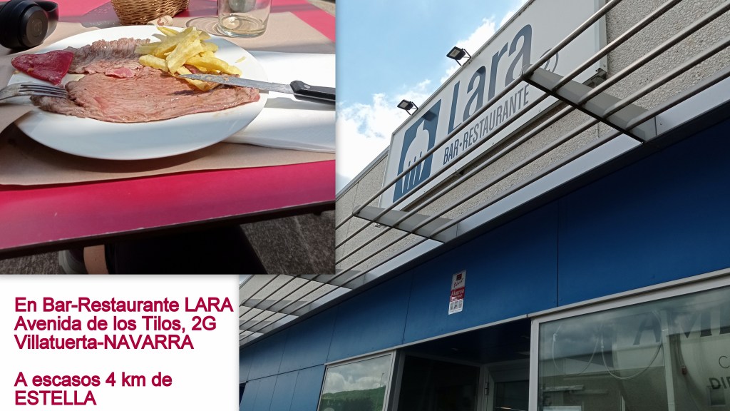 El día iba complicándose por las altas temperaturas y el asfalto en el tramo por Villatuerta a escasos 4 km ya de Estella por lo que opté por comer en un Restaurante en la zona industrial próxima al camino por el que vamos los peregrinos, pero lo suficientemente apartado para no encontrarme a ni uno solo y disfruté de un menú casero de lujo, en una terraza exterior donde me sirvieron muy amablemente.