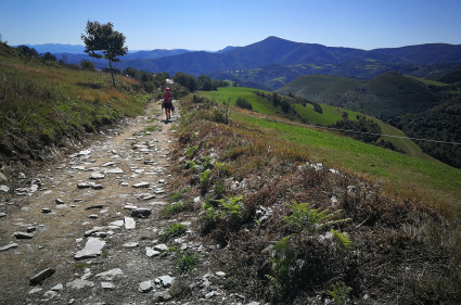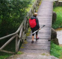 La salida de Casa Txatorena se retrasó porque esperamos la llegada de mi hijo y Marta con quienes haríamos dos etapas más los cuatro juntos. La ETAPA ZUBIRI- PAMPLONA es exigente por el tipo de firme y el descenso final. Andamos entre bosques en algunos tramos, descendenmos rampas de piedras para cruzar varias veces la carretera y andamos por un cortafuegos hasta volver a salir a la carretera cuando ya quedan los últimos 4 kilómetros que nos llevarán en descenso hasta Zubiri y en este punto encotraremos, según la època del año, una furgoneta/bar donde poder tomar algo, sea frío a caliente, para poder continuar. Si la lluvia ha estado presente en estos días, el firme es muy peligroso en este último tramo.