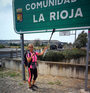 Como no podía faltar, la foto bajo el panel que anuncia la entrada a LA RIOJA. Llegando a LOGROÑO.