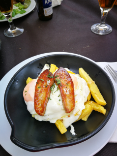 Desde luego no es uno de los platos más saludables, pero después de 9 días peregrinando, me dí el gustazo de pedir unos huevos fritos con foie. De verdad que no me arrepentí y al colgar la foto en el Post, recuerdo como si fuera hoy mismo lo bien que me sentaron¡¡…..