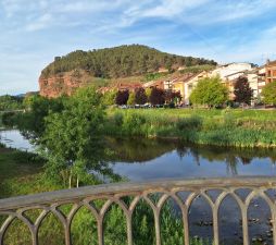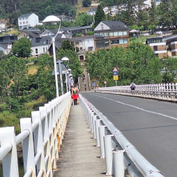 Día 9. Desayunamos  en el saloncito del mismo edificio, junto al Hostal y salimos por el puente que no habíamos cruzado el día antes al llegar, andamos por el casco antiguo, en  paralelo al río Najerilla para iniciar el ascenso hacía una colina que nos llevará hasta encotrarnos con la carretera.