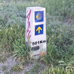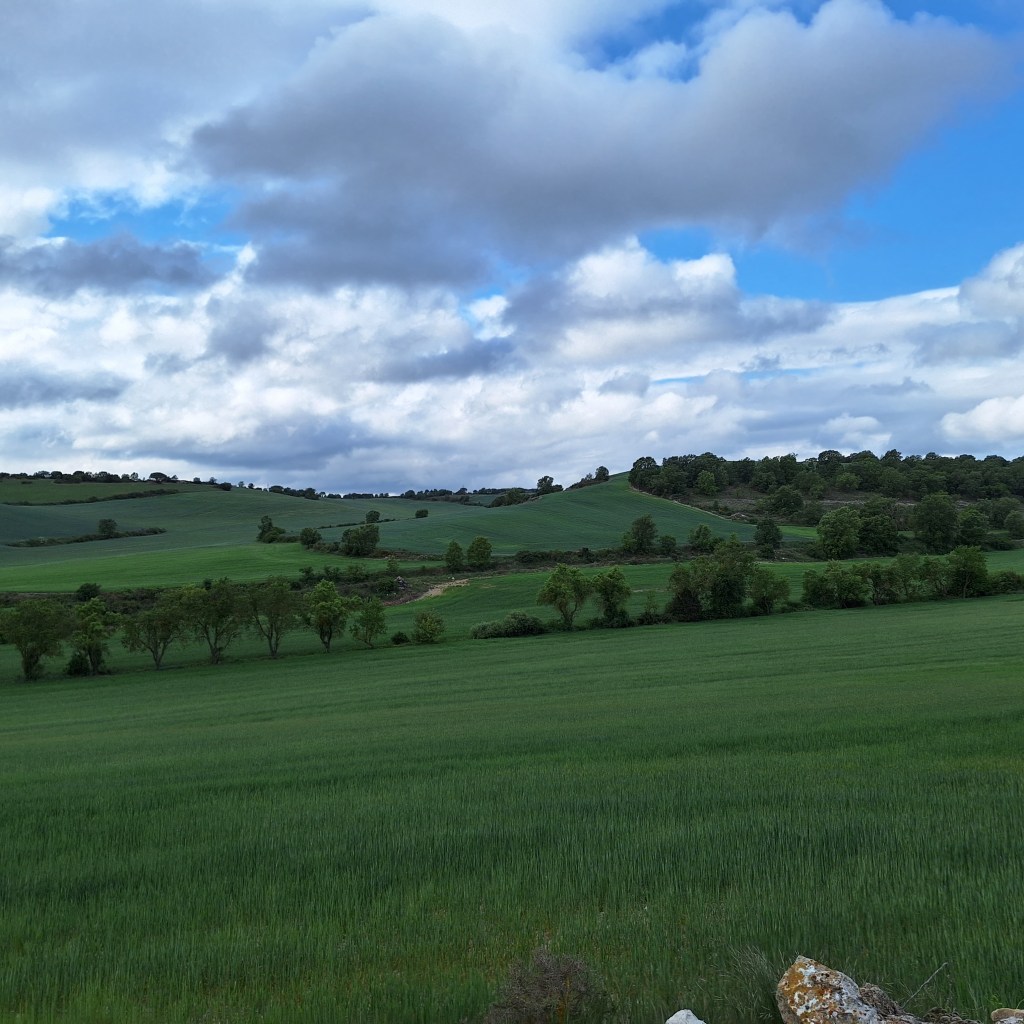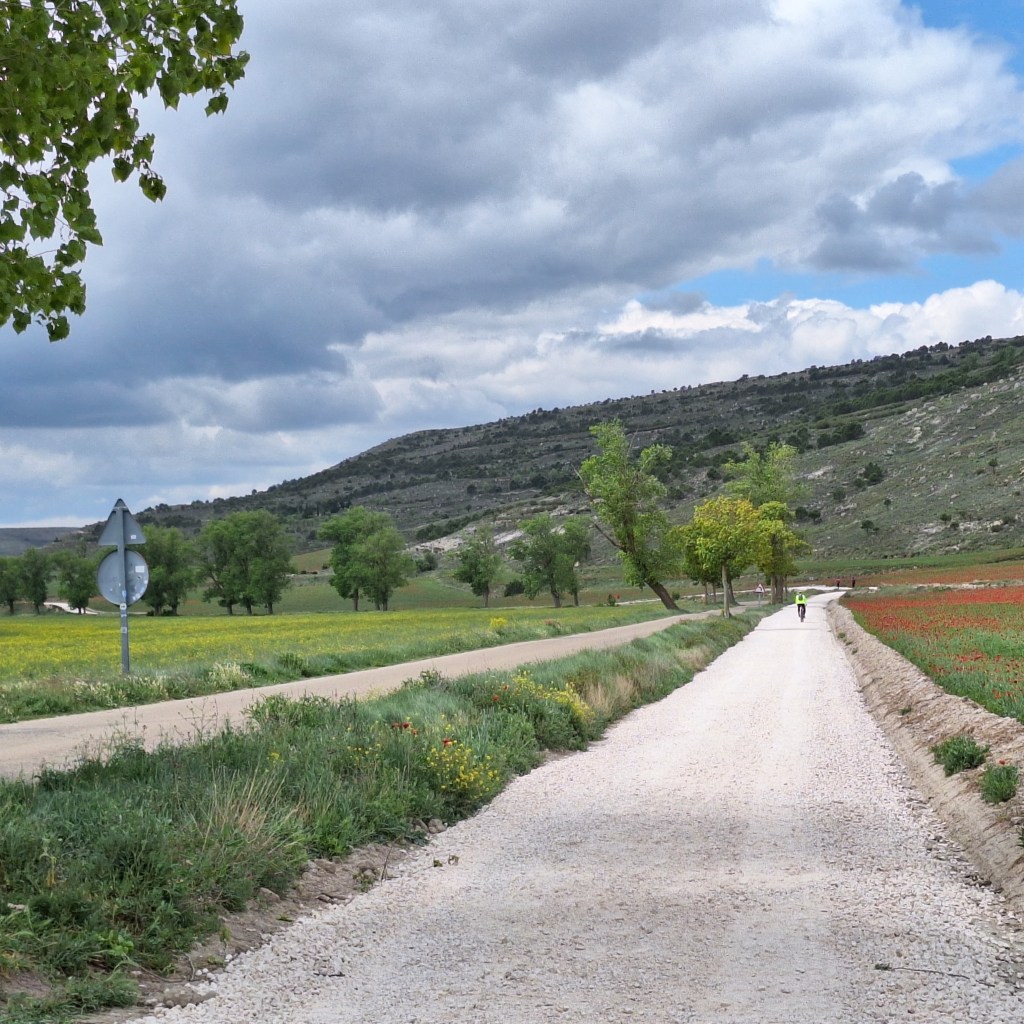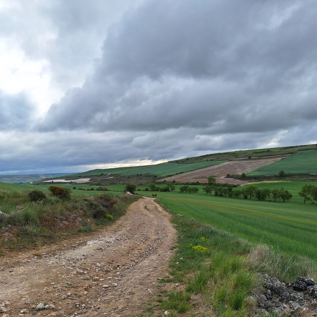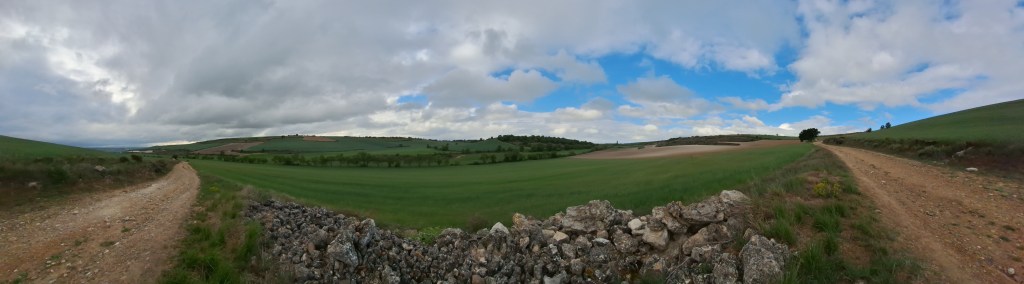 Al día siguiente, despues del desayuno sencillo que tomo, como ya es habitual, salí para hacer la etapa hasta Castrojeriz. Etapa larga. Por tramos monótonos y llanos que cansan por la falta de zonas de descanso y servicios. Pero este año puedo decir que hay cambios. Han acondicionado algunos tramos.