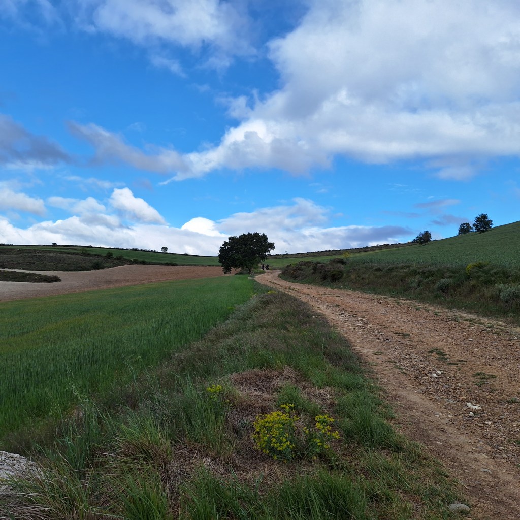 La etapa larga de hoy nos ha dejado tocadas. Aunque tengo que reconocer que haber salido de Logroño desde el mismo Embalse de la Grajera, nos ha ahorrado unos 4 kilómetros de los 32 que teníamos.