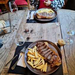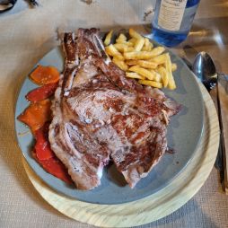Llegar a Hostal San Andrés es, para mí una ilusión cumplida. La familia que lo regenta, la familia de Fernando, es maravillosa. Este año he tenido el privilegio de saludar a su madre, responsable del Restaurante que regenta en el mismo complejo, una mujer con múchisima energía y muy resolutiva. Alucinamos viendo cómo gestionó la cola de comensales que se presentaron a cenar ya a las 19h en el Restaurante de Hostal San Andres, no sólo los huespedes de Hostal San Andrés, sino también los de otros lugares de los alrededores. Cuando fue nuestro turno, a las 21h, el comedor seguía lleno pero ya de los más rezagados en la cena.