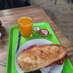 Al día siguiente, el desayuno lo hicimos allí mismo, después de dejar la maleta en el punto de recogida para JACOTRANS.