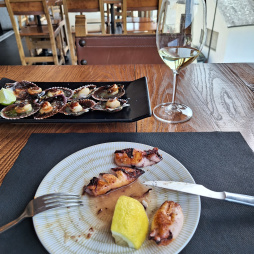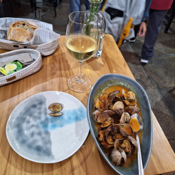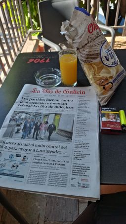 En Samos comí con Sonia, como el día anterior. Teníamos muchas cosas de qué hablar. Es una amiga encantadora. Y por la tarde aproveché para rehacer la maleta y ver si me cabría algo más ya que en Santiago de Compostela quería hacer compras que llevar a casa. El espacio en mi maleta es siempre un problema que me limita y agobia.