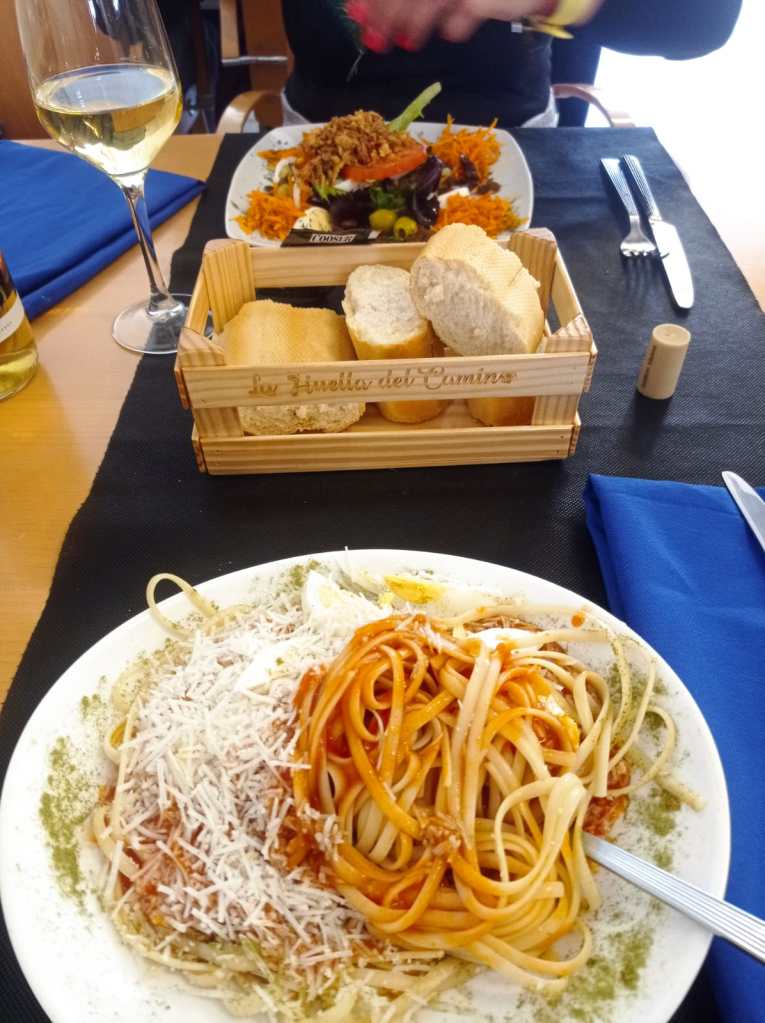 El desayuno en Albergue – Pension CASA LEMOS, con María y Laura, que regentan este lugar tan especial de Triacastela, con tanta amabilidad y cordialidad, haciendo las cosas muy bien, siendo uno de los lugares más limpios y tranquilos en los que he estado, me gusta hacerlo allí para poder pasar más tiempo con ellas. Este año tuve la oportunidad de cenar con Laura, en Restuarante Esther, donde había comido ya con Sonia, de A casa da Botica en Samos. Son amigas entrañables a las que añoro muchísimo el resto del año… Ellas son el motivo de mi pasión por el camino. Ellas y muchas otras amigas que me acogen en sus negocios, con quienes comparto momentos e historias.