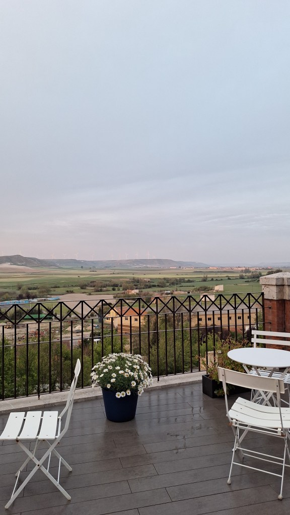 Pasar la tarde viendo lllegar peregrinos, sentarse en la terraza, asomarme al balcón de mi habitación es un lujo…..