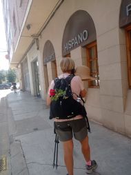 Por la tarde salí a la lavandería- autoservicio del centro de la población. De paso aproveché para comprar algún detalle para poner en la mochila, a falta de Pilar, que la llenaba de flores, decidí llenarla de «pins».