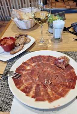 Antes de hacer el cheking comí en la cafería exterior del REal Monasterio, frente a un jardín espectacular donde pude descansar y disfrutar de unas tapas muy buenas acompañado de un vino blanco. No tardé demasiado en retirarme a mi habitación.