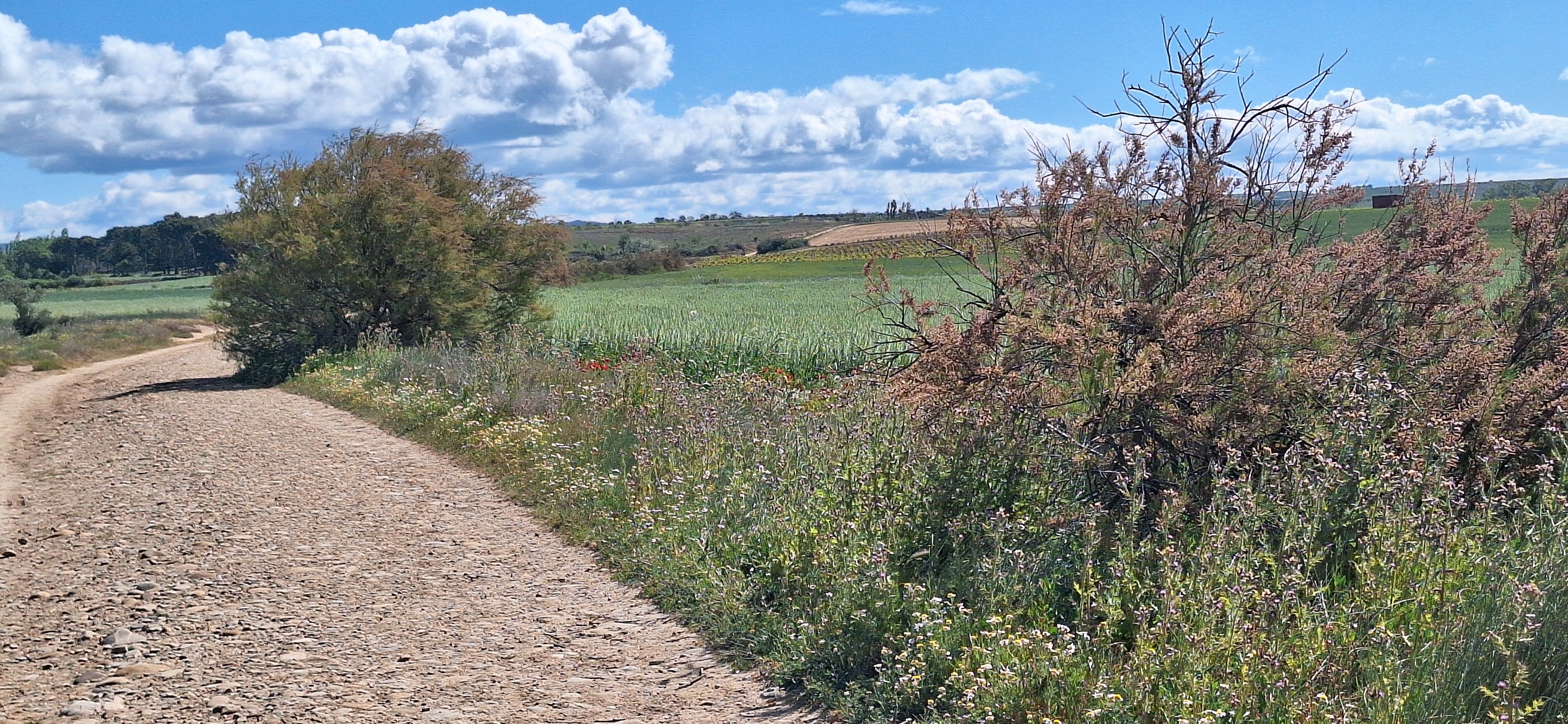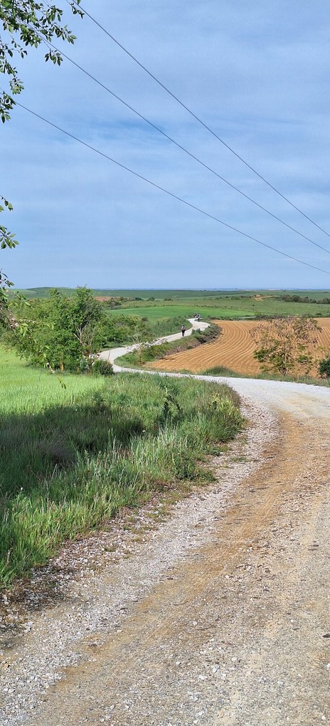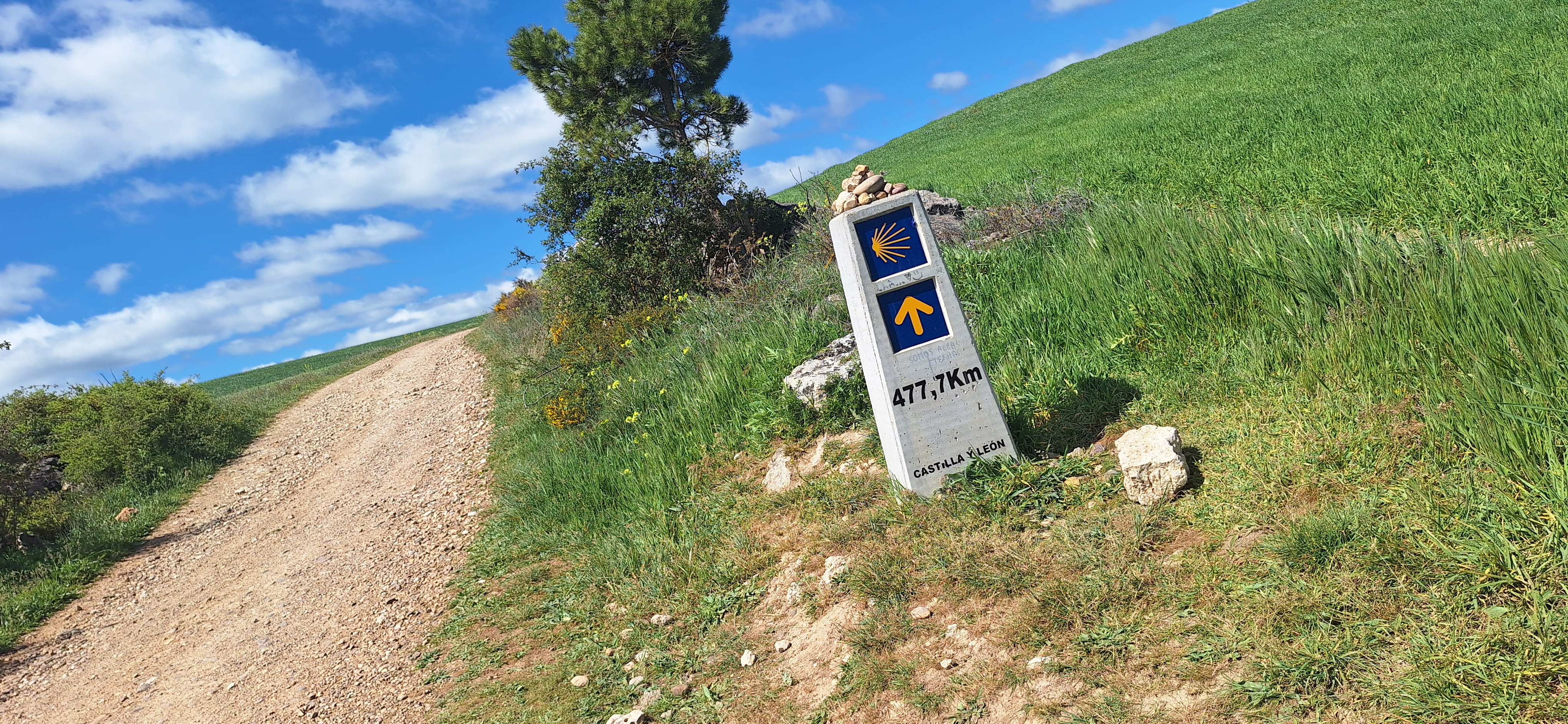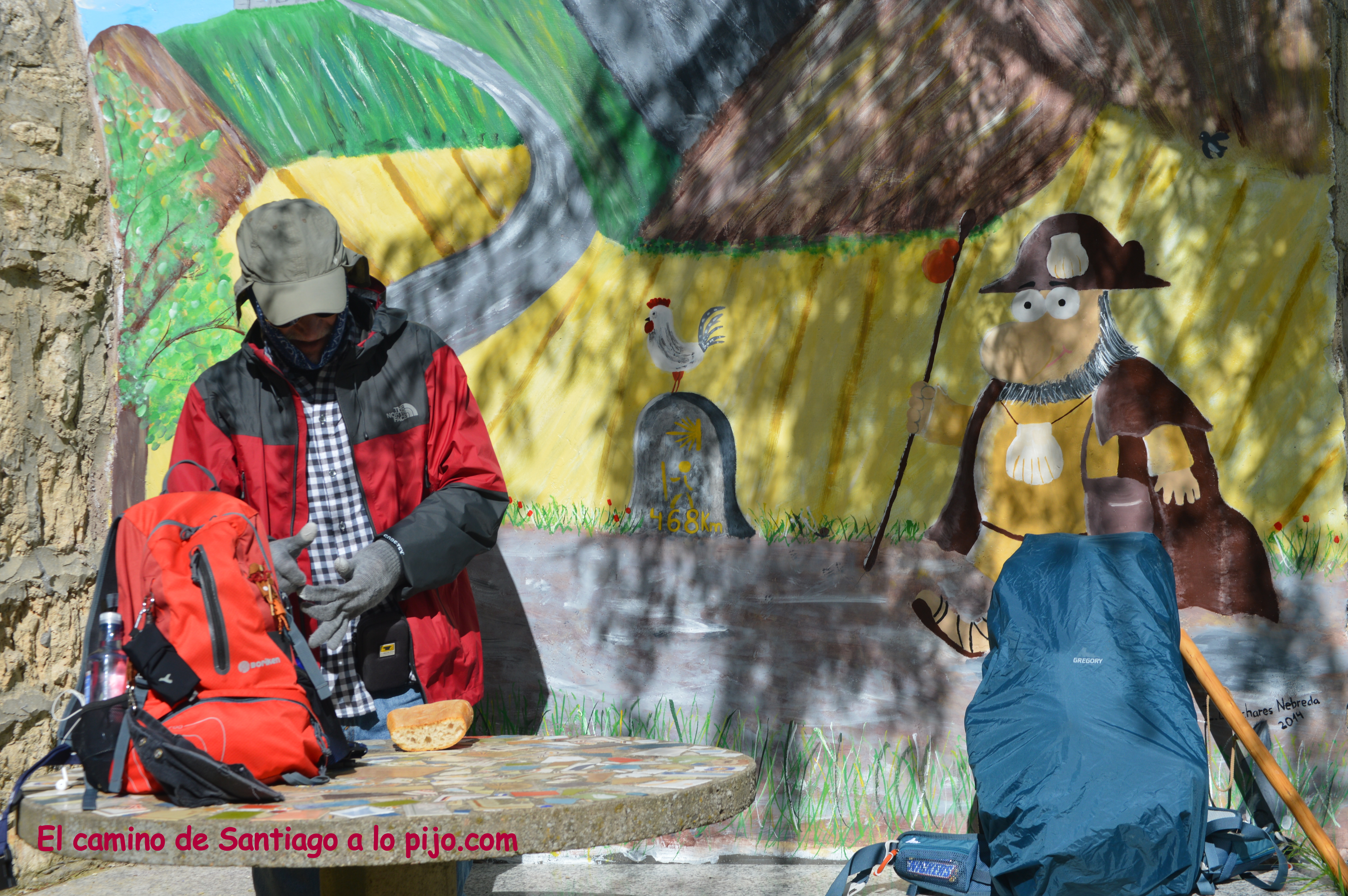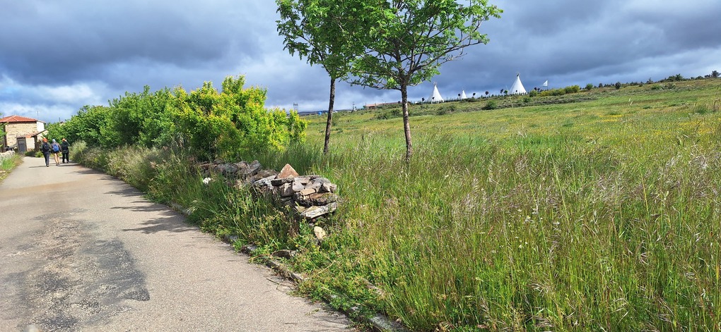 Ya estoy en tierras familiares, de tantas veces que he hecho este camino, no puedo ni recordar cuantas. Es muy emotivo cuando salgo de Astorga y dejo atrás la población, por asfalto hasta pasados unos kilómetros que andamos por un sendero abierto y muy cercano a una carretera con poco tráfico. El primer pueblo que encontramos, siempre en llano, es Murias de Rechivaldo, que no entiendo el significado de este nombre, pero lo atravesamos y seguimos en llano por sendero apartado de carretera. Con algún que otro pequeño banco para sentarse, pero hasta Santa Catalina de Somoza no podremos tomar algo o ir al baño. Más adelante, siguiendo en llano, El Ganso, donde suelo parar a tomar un pincho de Tortilla. Este año, los dueños lo han traspasado y ya no hacen la tortilla como la hacía aquella mujer. Pero me quedo y charlo con un matrimonio Riojano que hacen el peregrinaje en Autocaravana, dejándola 2 ó 3 etapas más atrás o más adelante, moviéndose entre taxis o transporte público para volver a trasladarla a hacer otras etapas más. Muy agradables y además me contaron que estaban celebrando la jubilación del marido, aunque ella aún estaría un tiempo trabajando hasta que le llegara su turno. En definitiva, hablamos y eso me entretuvo demasiado, pero es agradable conversar con gente que quizás no vuelva a ver más pero siempre dejan huella.