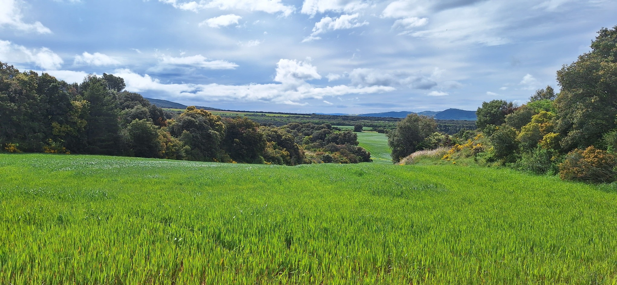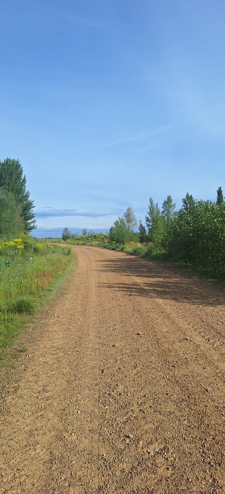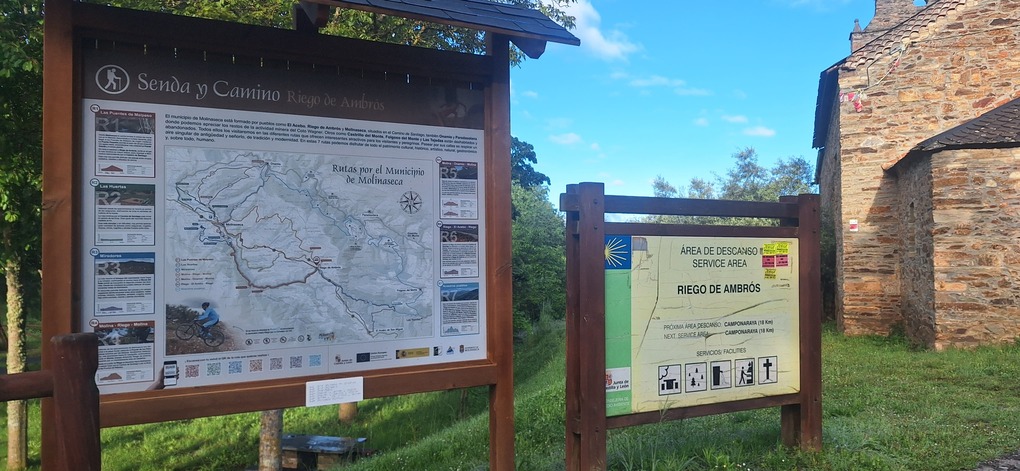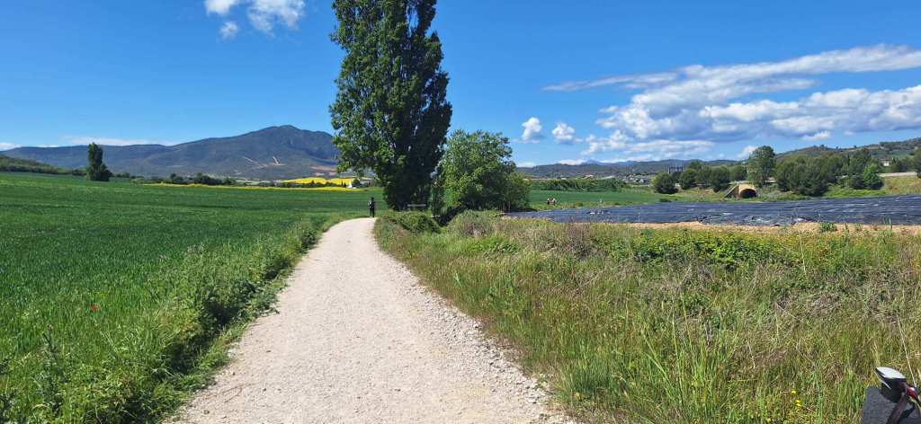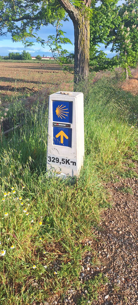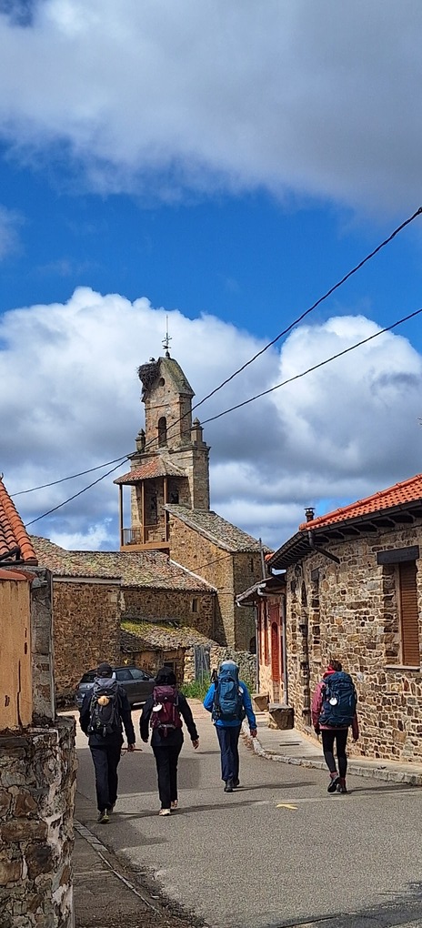 Ya estoy en tierras familiares, de tantas veces que he hecho este camino, no puedo ni recordar cuantas. Es muy emotivo cuando salgo de Astorga y dejo atrás la población, por asfalto hasta pasados unos kilómetros que andamos por un sendero abierto y muy cercano a una carretera con poco tráfico. El primer pueblo que encontramos, siempre en llano, es Murias de Rechivaldo, que no entiendo el significado de este nombre, pero lo atravesamos y seguimos en llano por sendero apartado de carretera. Con algún que otro pequeño banco para sentarse, pero hasta Santa Catalina de Somoza no podremos tomar algo o ir al baño. Más adelante, siguiendo en llano, El Ganso, donde suelo parar a tomar un pincho de Tortilla. Este año, los dueños lo han traspasado y ya no hacen la tortilla como la hacía aquella mujer. Pero me quedo y charlo con un matrimonio Riojano que hacen el peregrinaje en Autocaravana, dejándola 2 ó 3 etapas más atrás o más adelante, moviéndose entre taxis o transporte público para volver a trasladarla a hacer otras etapas más. Muy agradables y además me contaron que estaban celebrando la jubilación del marido, aunque ella aún estaría un tiempo trabajando hasta que le llegara su turno. En definitiva, hablamos y eso me entretuvo demasiado, pero es agradable conversar con gente que quizás no vuelva a ver más pero siempre dejan huella.