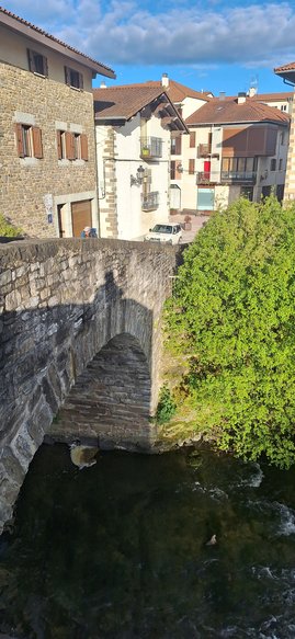 Después de comer volví a la Estación de Autobuses de Pamplona para subir a Zubiri en Bus. Justo a la llegada a esta población volvió a caer granizo y no pude evitar llegar a Casa Txantxorena, totalmente mojada.