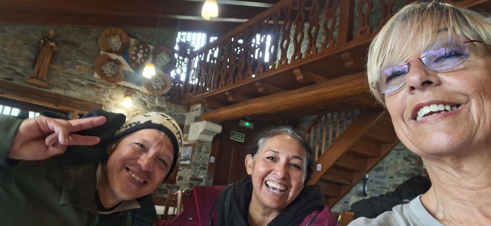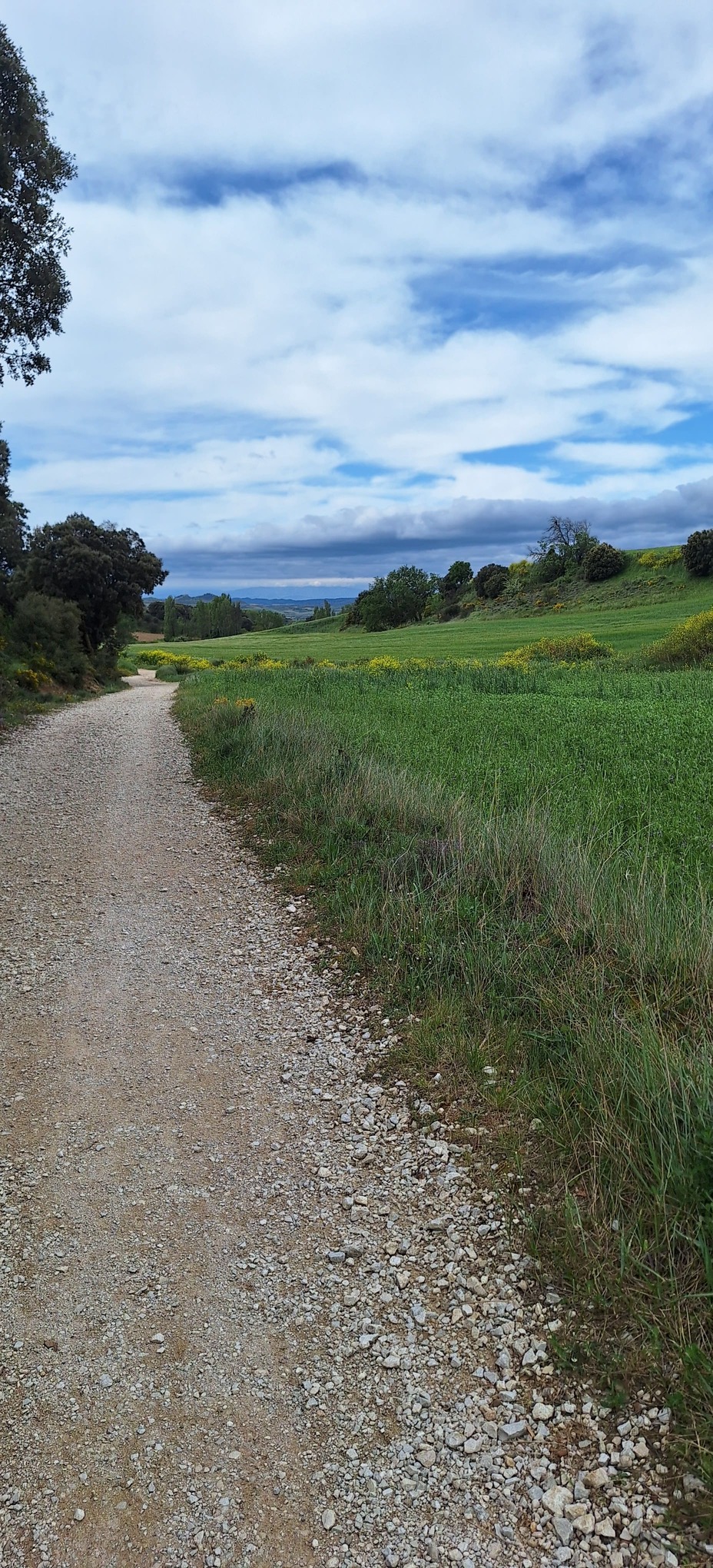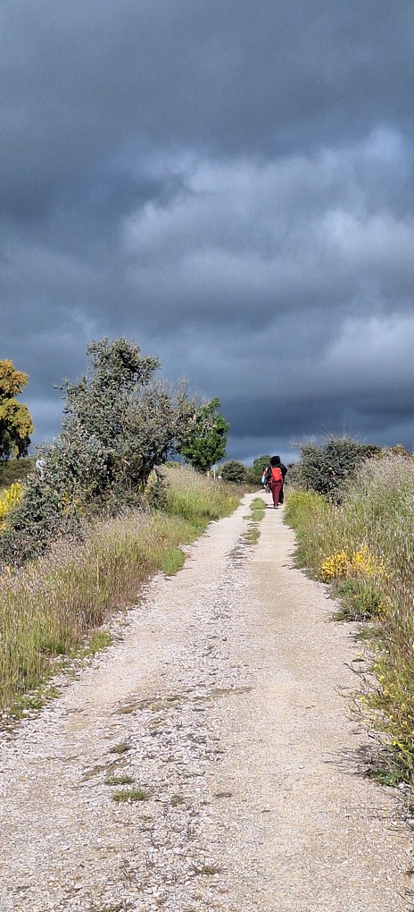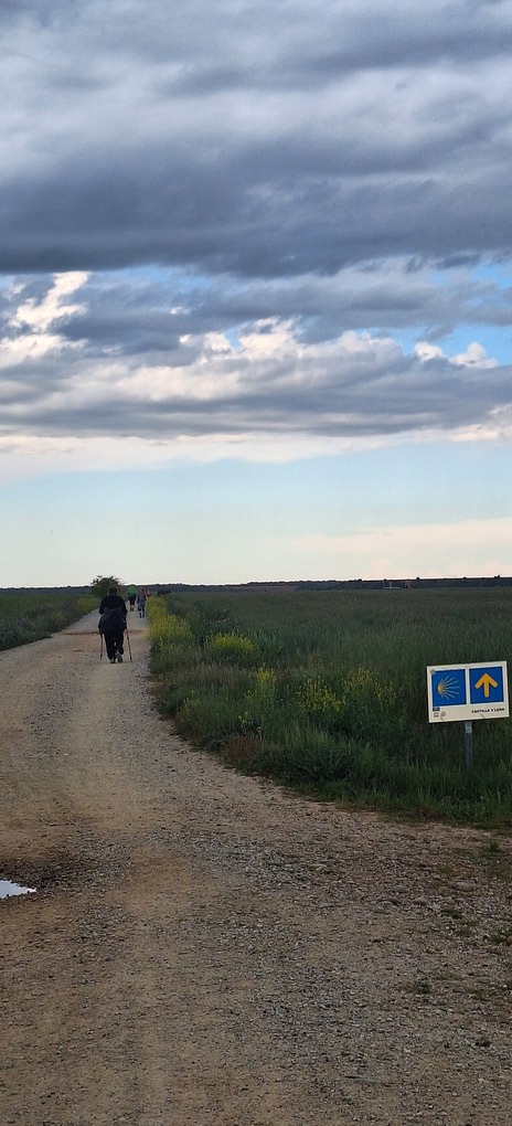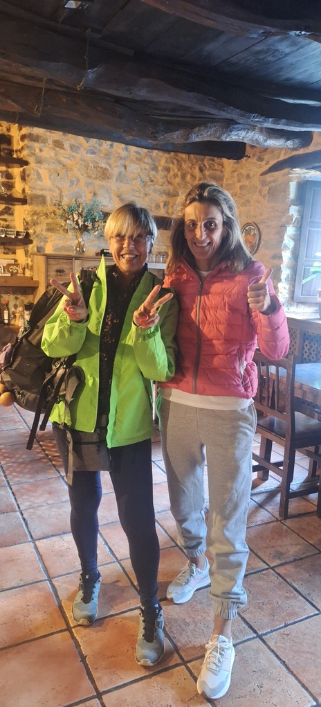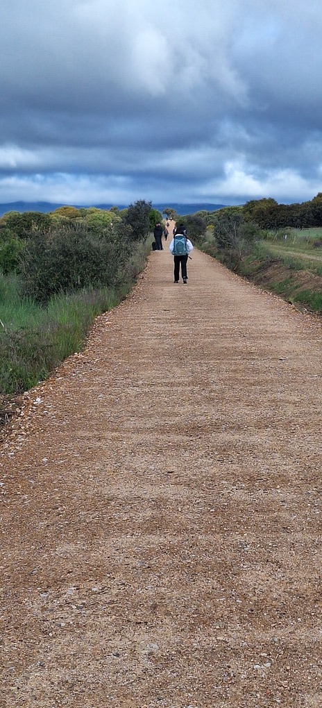 Nuevamente, tarde de relax, sin salir a pasear por los alrededores, pero en buena compañía, que falta me hacía. Este peregrinaje a sido muy diferente a otros. El mal tiempo y el frío inusual, han sido los motivos por los que no me he sociabilizado como otros años, saliendo a pasear, sentándome en una terraza con otros peregrinos con los que andamos a diario y nos saludamos y poder comentar la etapa y hablar de mil cosas con gente que no conoces pero que acaban siendo como amigos del alma, conoces más cosas de estas personas que de tus propios amigos, porque la gente se abre cuando puede y se dan las condiciones cuando haces el camino, porque estás lejos de los tuyos, de tu día a día y esto hace que necesites tener conversaciones trascendentales o absurdas con desconocidos con los que acabas siendo el mejor amigo que tiene a mano. Esto pasa pero este año no ha sido así. Llegar a una población pequeña, donde hay como mucho un par de bares, sabes que allí estarán todos tomando alguna cerveza antes de acostarse o de cenar, pero es que ni las terrazas estaban abiertas en estos lugares, con el tiempo revuelto y tormentoso ¡¡. En definitiva, ha sido más un camino de introspección, de pensar en mis cosas y añorar a quien más quiero, a mi marido. Se lo dije al regresar, -te he añorado mucho¡¡¡