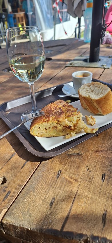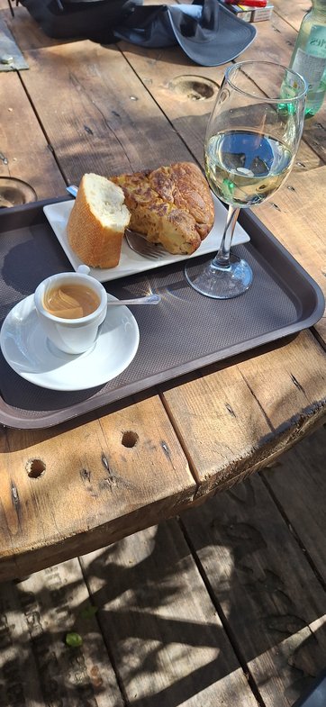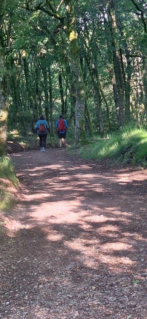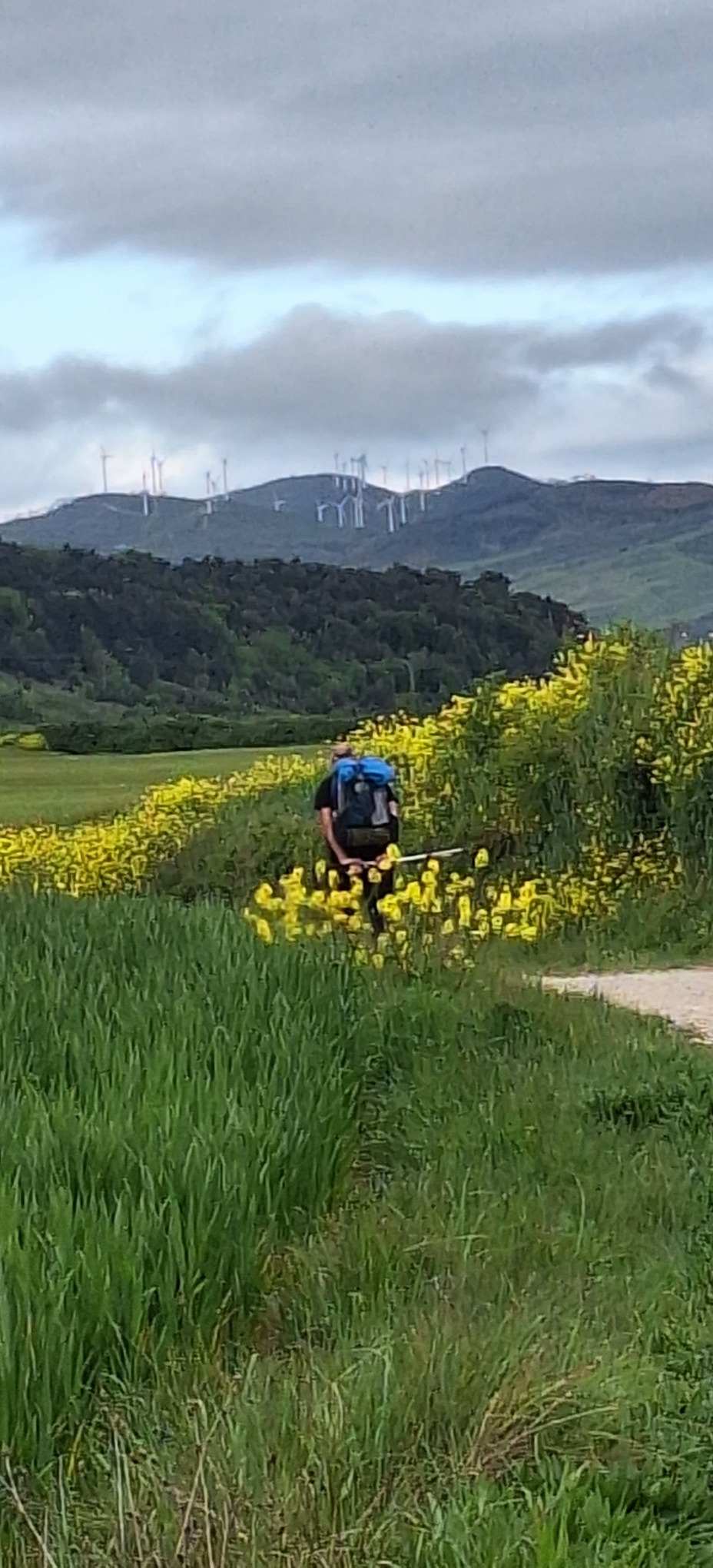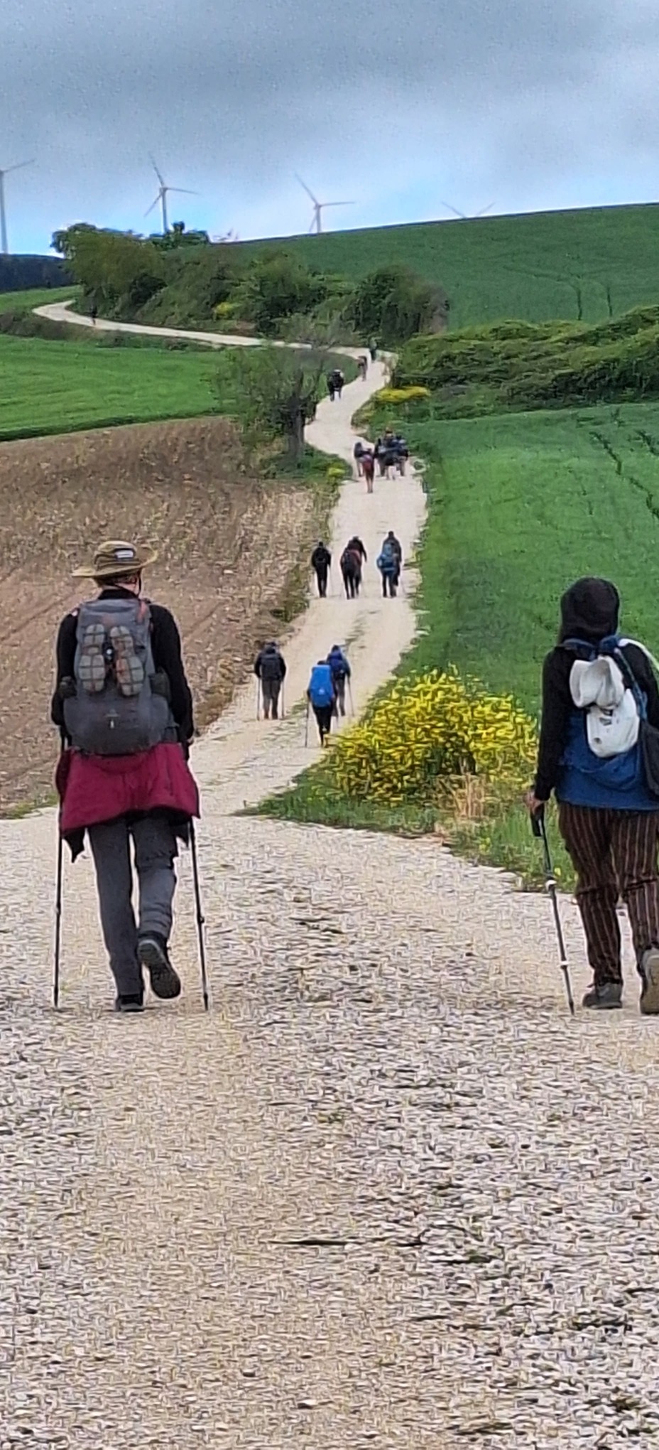 Nuevamente, tarde de relax, sin salir a pasear por los alrededores, pero en buena compañía, que falta me hacía. Este peregrinaje a sido muy diferente a otros. El mal tiempo y el frío inusual, han sido los motivos por los que no me he sociabilizado como otros años, saliendo a pasear, sentándome en una terraza con otros peregrinos con los que andamos a diario y nos saludamos y poder comentar la etapa y hablar de mil cosas con gente que no conoces pero que acaban siendo como amigos del alma, conoces más cosas de estas personas que de tus propios amigos, porque la gente se abre cuando puede y se dan las condiciones cuando haces el camino, porque estás lejos de los tuyos, de tu día a día y esto hace que necesites tener conversaciones trascendentales o absurdas con desconocidos con los que acabas siendo el mejor amigo que tiene a mano. Esto pasa pero este año no ha sido así. Llegar a una población pequeña, donde hay como mucho un par de bares, sabes que allí estarán todos tomando alguna cerveza antes de acostarse o de cenar, pero es que ni las terrazas estaban abiertas en estos lugares, con el tiempo revuelto y tormentoso ¡¡. En definitiva, ha sido más un camino de introspección, de pensar en mis cosas y añorar a quien más quiero, a mi marido. Se lo dije al regresar, -te he añorado mucho¡¡¡