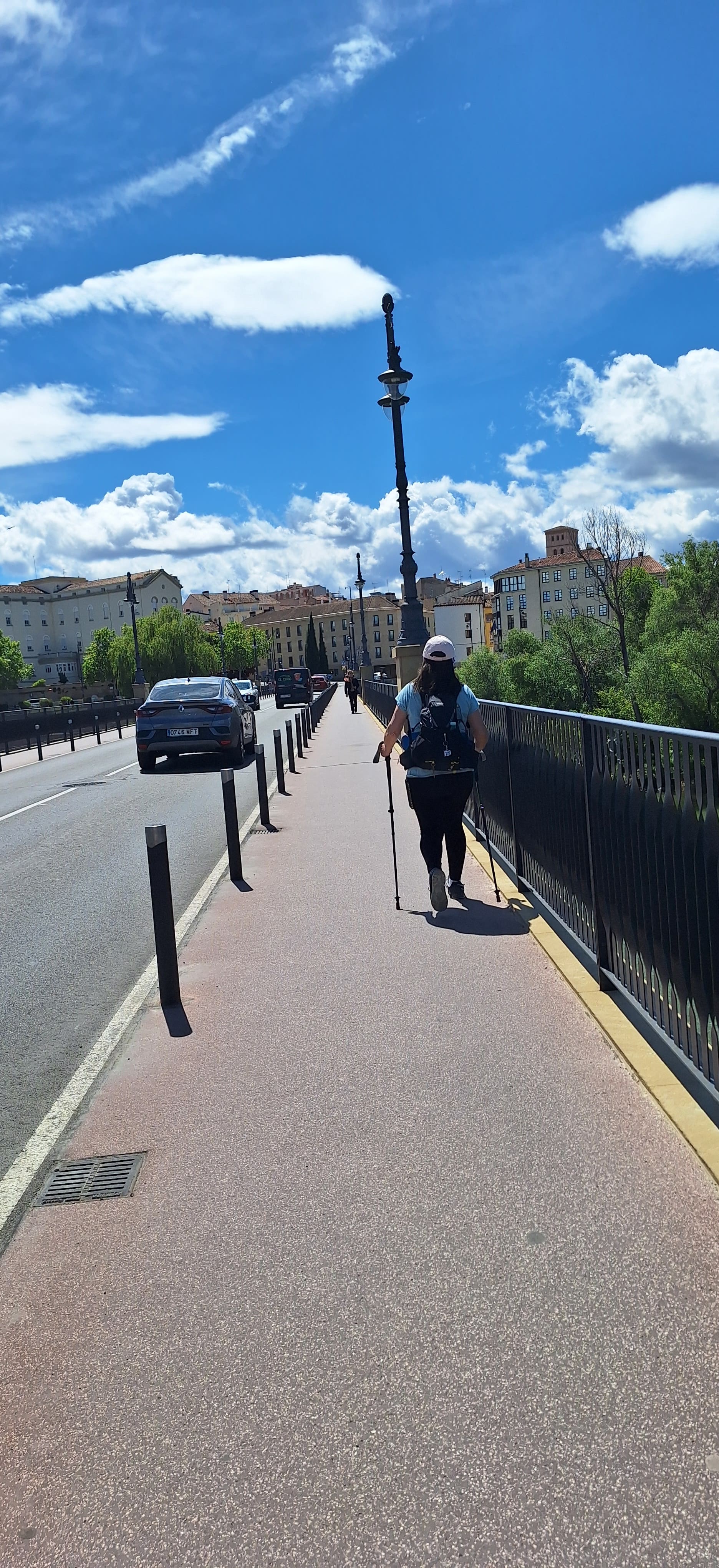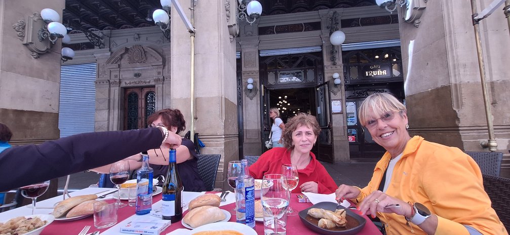 Coincidí durante la etapa con Marta, una peregrina catalana que andaba algo más lenta que sus compañer@s…. y pudimos charlar mientras caminábamos hacia Pamplona. Como era su primer peregrinaje, pude aconsejarle sitios para comer bien en Pamplona y acabamos los 5 comiendo en Restaurante CAFÉ IRUÑA, un clásico, al que suelo ir a comer al llegar a Pamplona porque está cerca de mi hotel y comimos de lujo y disfrutamos charlando muchísimo. Al día siguiente, seguimos conversando al coincidir en la Etapa y el lugar de llegada, PUENTE LA REINA