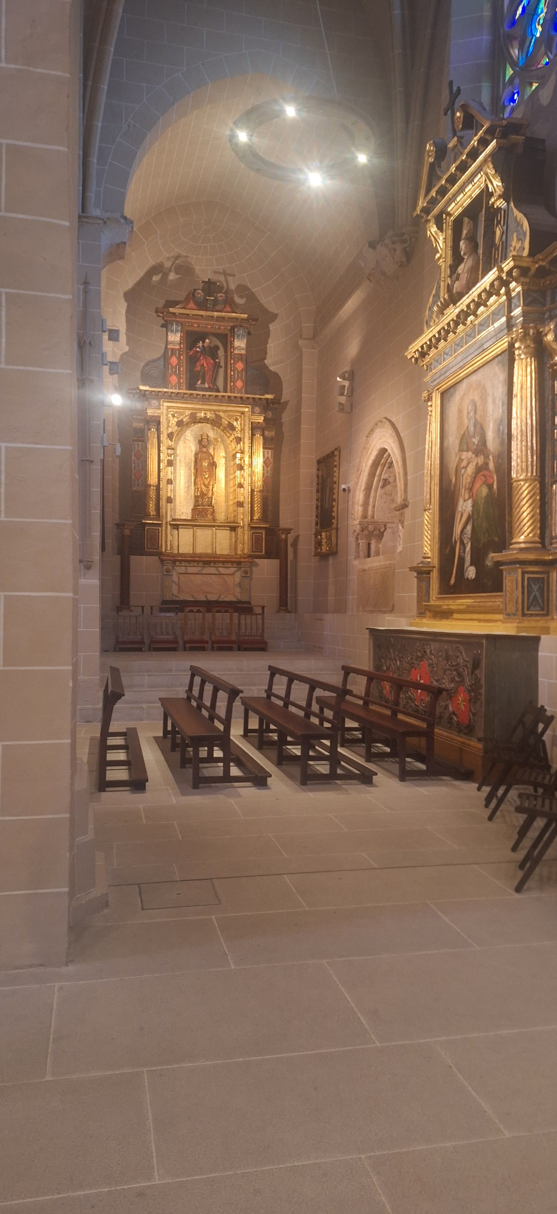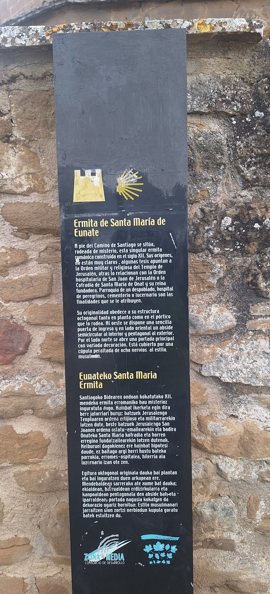 La etapaPAMPLONA- PUENTE LA REINA tiene dos partes. Empieza por asfalto, salimos de la Ciudad por la zona Universitaria, y antes de alcanzar el Alto del Perdón, pasamos por dos poblaciones: Cizur Menor y Zariquiegui, para después descender por un camino lleno de piedras peligroso hasta llegar a Muruzábal, más adelante, Obanos y por último, llegamos a PUENTE LA REINA. Esta etapa la hice acompañada del grupo catalán, con los que quedamos para comer al llegar a Puente la Reina, en Restaurante: el Fogón de Etayo, al que suelo ir al finalizar la etapa, uno más de los que considero ya «un clásico». Elegimos el menú degustación y nos pusimos las botas comiendo y bebiendo… la cuestión es que llegamos a las 14h y salíamos a las 17h. en taxi, porque nos facilitaron el contacto de una taxista que nos llevó a visitar LA IGLESIA DE EUNATE, un clásico, también, que solemos no visitar al llegar a Muruzábal, porque es andar más kilómetros para llegar a Puente la Reina. Es una buena forma de sociabilizarse y disfrutar viendo lugares que son históricos y culturales de gran interés. Ver también: DE PAMPLONA A PUENTE LA REINA clicando en este otro enlace azul.