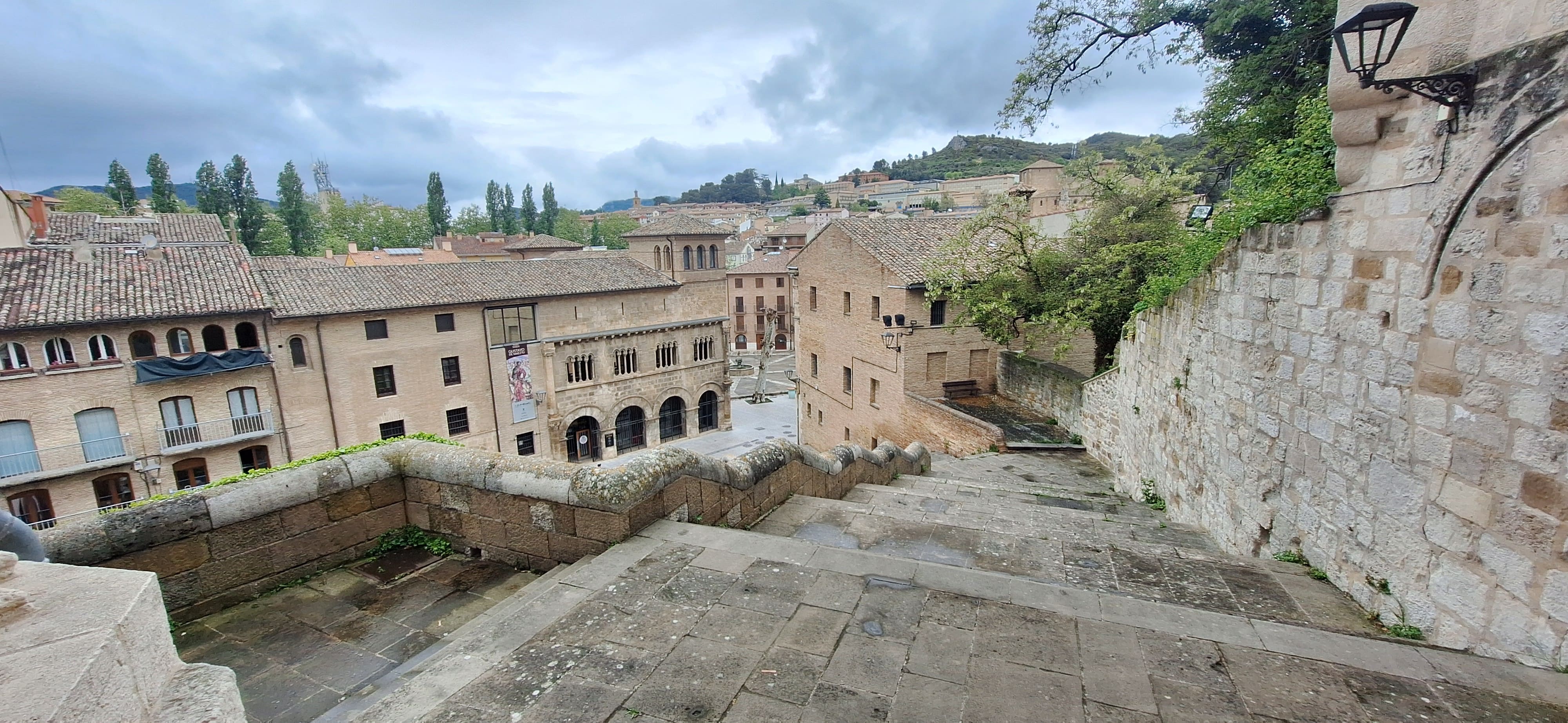 Casualidades curiosas, que coincidimos en el mismo hotel, además. Pero el tiempo no acompañó ya por la tarde para hacer salida. En mi caso, pasé la tarde, nuevamente, en la habitación, organizando la maleta, que día a día está mas revuelta y por falta de espacio. La ropa sucia empieza a estar amontonada de forma que me quita espacio y tengo mucho problema con colocar la ropa usada y sacar la del día siguiente. La previsión era terrible, lluvia y tormenta además de bajada de temperatura y a mi edad, andar en estas condiciones es arriesgarme a pillar un constipado, por lo que tenía claro que al día siguiente, me iba a TORRES DE RÍO en autobús…. y así lo hice sin antes pasearme con paraguas por esta Monumental población que dejaría atrás ….