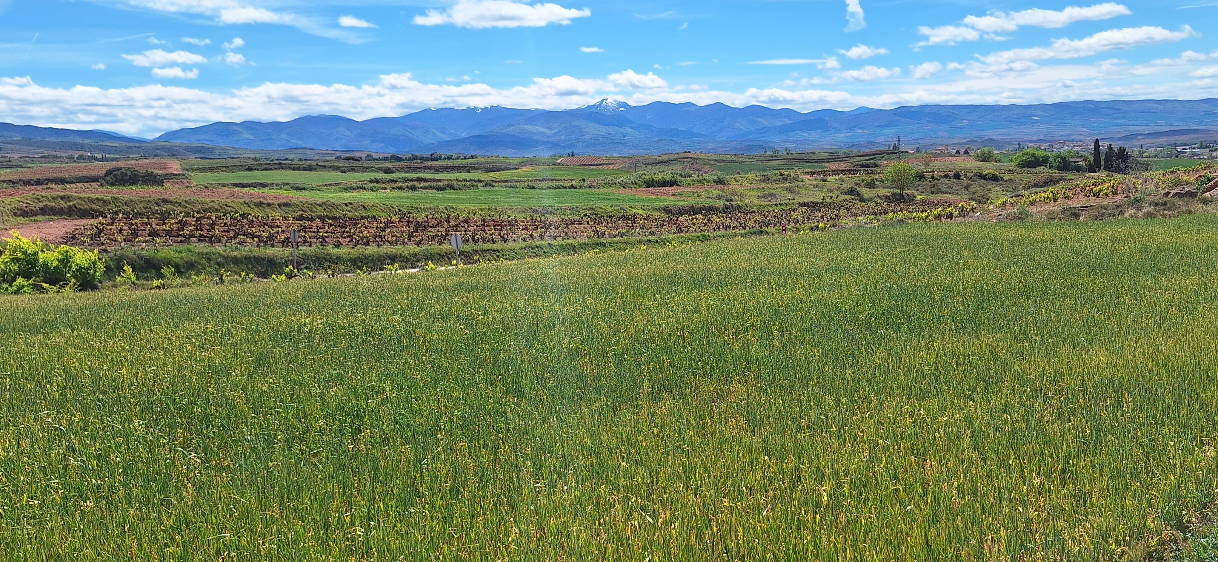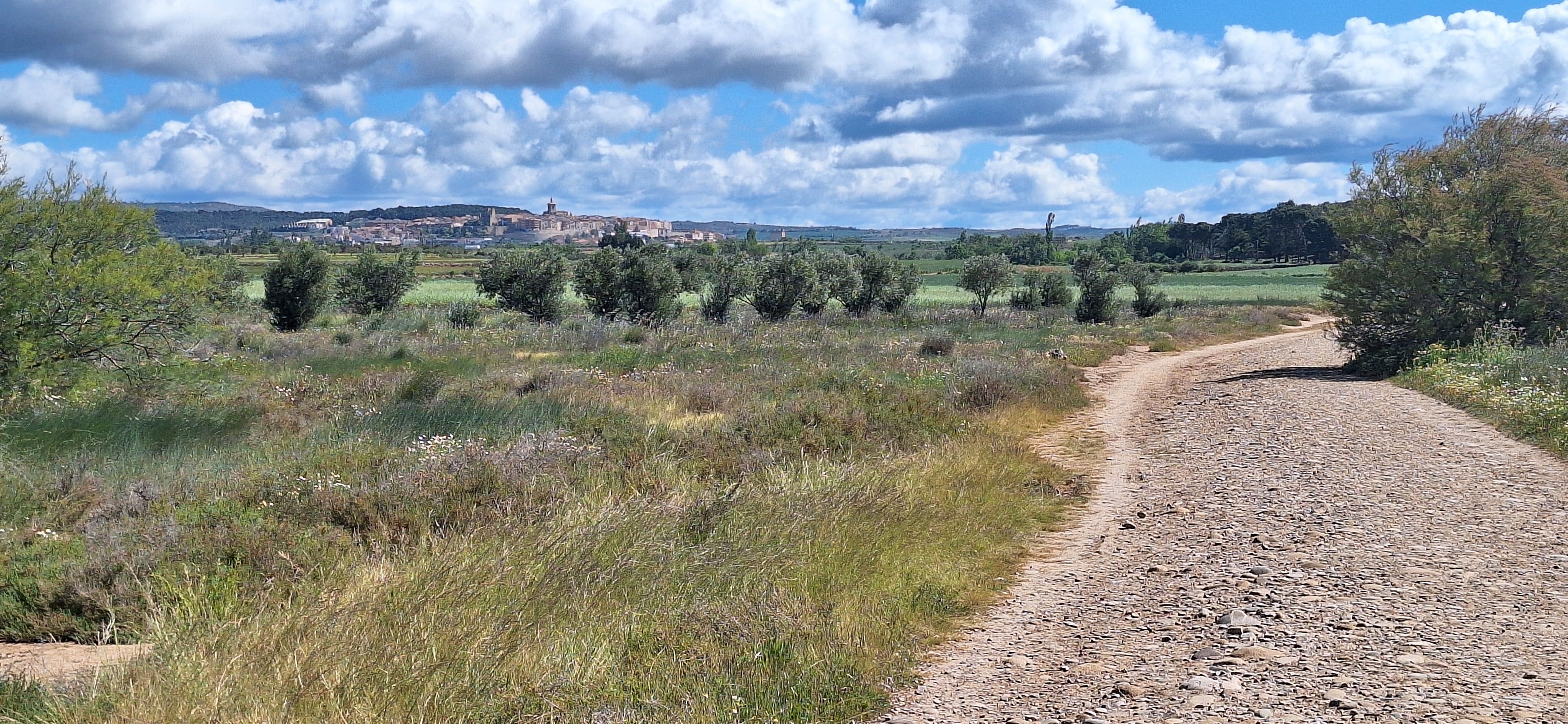 La llegada a Belorado se hace dura en los últimos kilómetros, porque a pesar de ser una etapa llana, es monótona, comparada con las anteriores. Entramos en Castilla-León y esto va ha ser una constante hasta Galicia. Campos y más campos por los que andamos, que en Mayo tienen la curiosidad de los cultivos y sus vivos colores pero son etapas monótonas por la falta de áreas de descanso y poblaciones intermedias donde poder ir al baño o tomarse un «pincho de tortilla» que tanto gusta a los extranjeros. Y una vez en Belorado, previa reserva telefónica, llego siempre primero al Restaurante LA HUELLA DEL CAMINO, donde parece que ya me recuerdan de otras tantas veces que repito¡¡