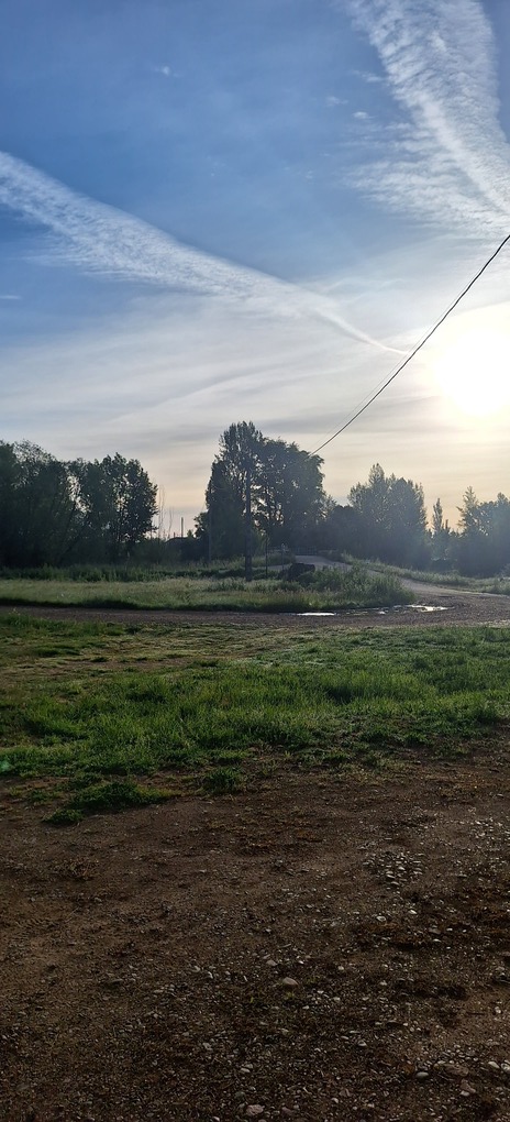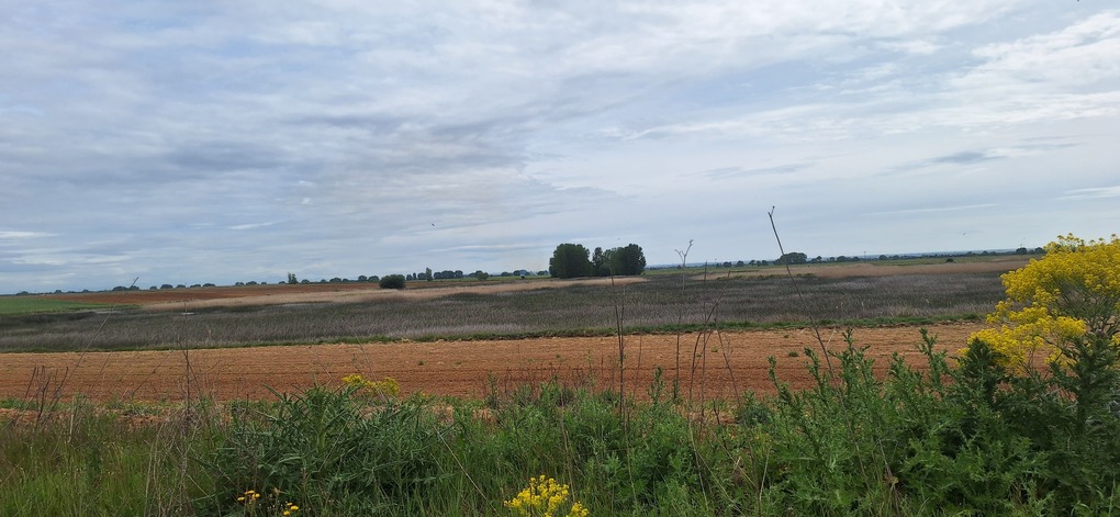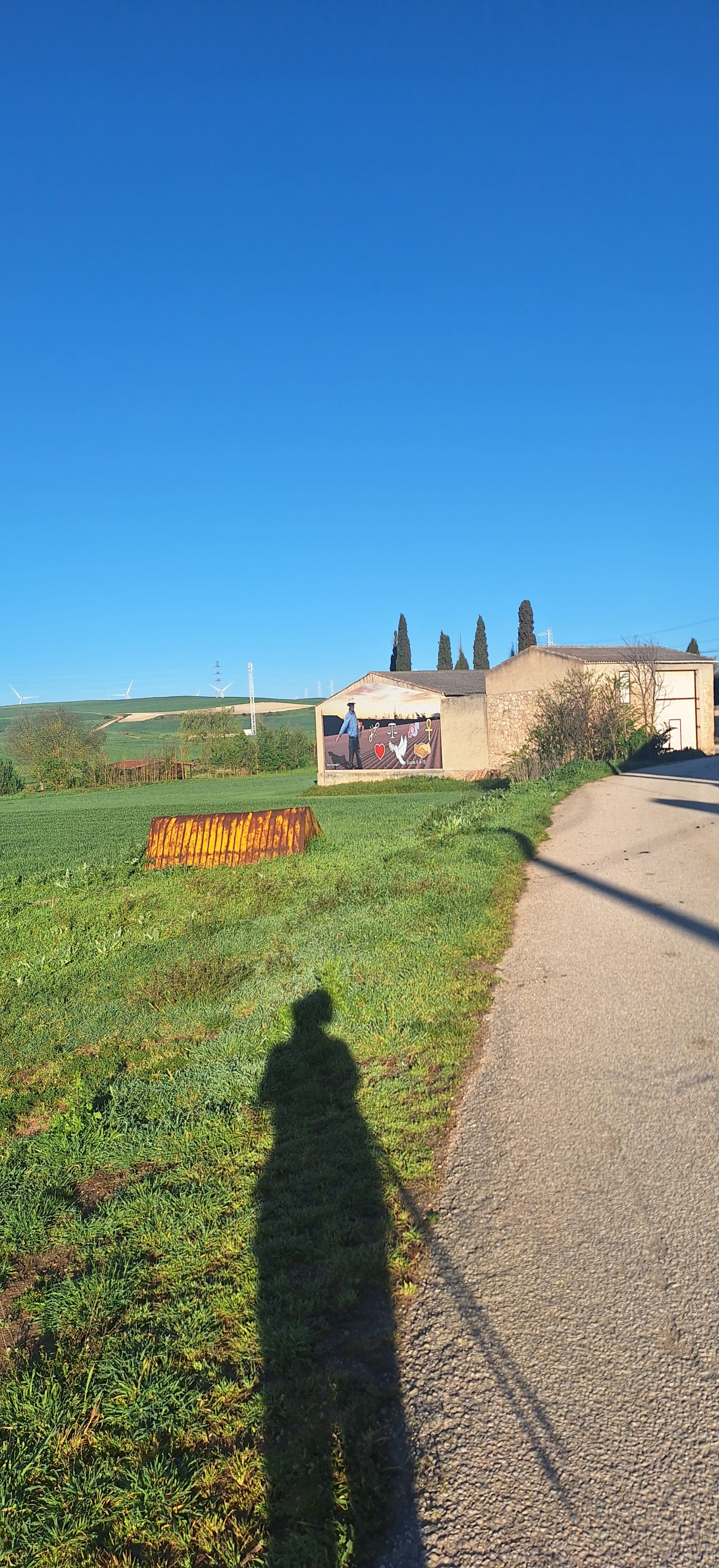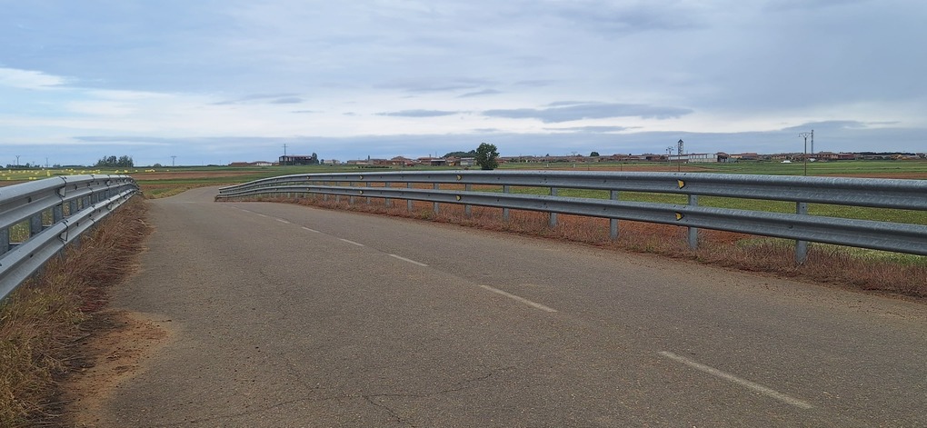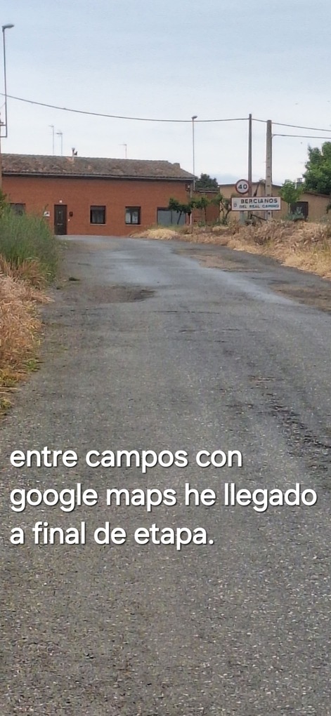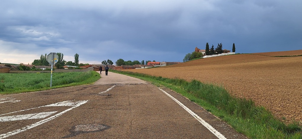Después de un sencillo desayuno, salí de esta población por carretera. Mi destino era BERCIANOS DEL REAL CAMINO, a 14 kilómetros, por lo tanto decidí no seguir la ruta que me propuso Enrique ya que, siendo más corta, era más solitaria y no me apetecía estar vigilando que nadie me siguiera. Aún así me perdí porque Google Maps no tiene constancia que en su trazado hay un campo enorme que impide el paso y me tocó discutirme con el hombre del tractor que explicó que el terreno antes tenía otro propietario y él le compró ese campo así que los unificó y me tocó andar 2 kilómetros más, sin avanzar, para llegar a Bercianos del Real Camino por una carretera secundaria. La anécdota del día, fue mi charla con este agricultor, terrateniente y muy trabajador, que me ofreció cruzar por sus campos para evitarme esos 2 kilómetros, pero el andaba con unas botas de agua hasta la rodilla, metiéndolas en el barrizal y yo llevaba unas bambas frescas, sin goretex por lo que acabaría de barro hasta las cejas.
