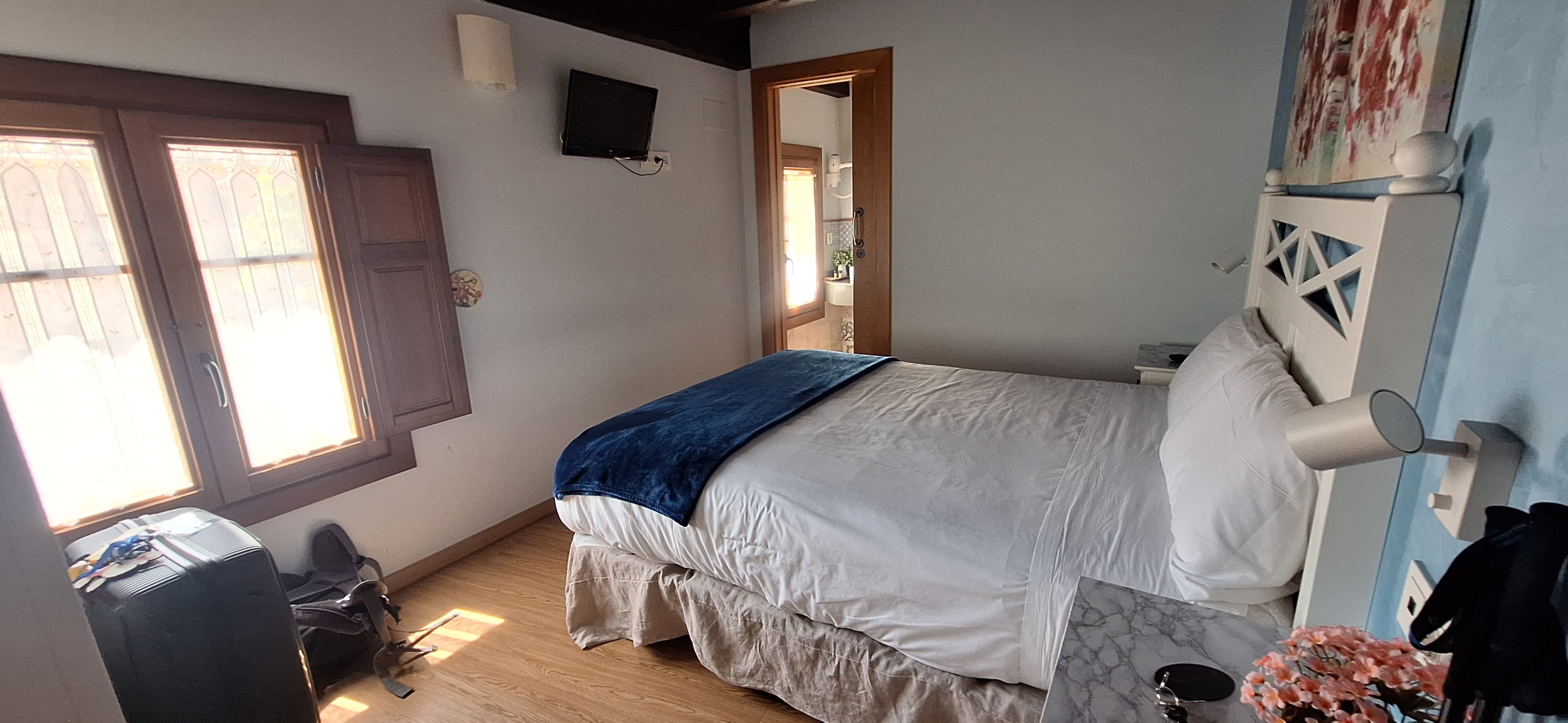 Estaba ya dormida cuando oí ruidos en el pasillo…. `puerta que no abre, puerta cerrada sin respeto a los que ya dormíamos a los 12 de la noche, y una vez dentro de la habitación, el individuo en cuestión, tenía su cabeza pegada a la mía. O sea, las paredes eran como finas láminas de melamina. Le llamaron como 3 veces, le enviaron wasaps, porque no debería saber ponerlo en silencio, así que la cosa se alargó hasta altas horas de la madruga que pude coger el sueño de nuevo, a todo esto, con la ventana abierta, porque la responsable de recepción me comentó que la calefacción estaba encendida y no se podía apagar. Estos días atrás estaba haciendo falta ponerla, pero concretamente el día que estaba yo, hacía muchísima calor y no podían apagarla por un problema de sistema automatizado ecológico y sostenible ¡¡¡ Me pareció increíble que la opción fuera que durmiese con la ventana entreabierta. En definitiva, no puedo hacer el reportaje del lugar. No volveré a dormir en Frómista.