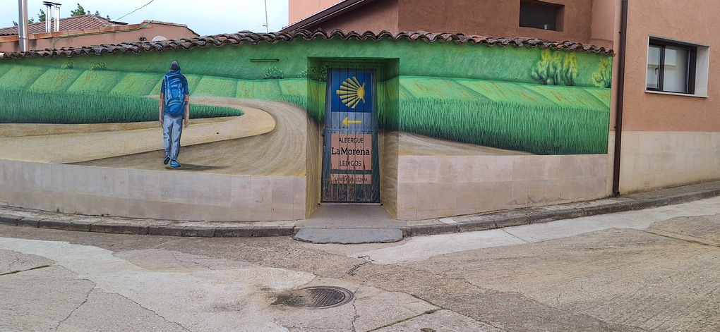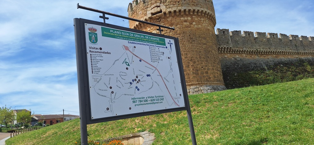 Y tras el desayuno incluido en el precio, salí feliz a caminar de nuevo, porque tenía una ETAPA ( QUE AÚN NO HE PUBLICADO), desde LEDIGOS A GALLEGUILLOS DE CAMPOS, que no está en el «camino francés», pero ya la había hecho en 2014 así que era cuestión de vigilar no pasarme el desvío. Los 23 km que debería haber andado se convirtieron en 27 porque llegué hasta GRAJAL DE CAMPOS, que ahora está como punto de parada del nuevo «CAMINO DE MADRID»…. para quien quiera saber sobre este «camino», puede entrar en este enlace: https://www.gronze.com/camino-santiago-madrid