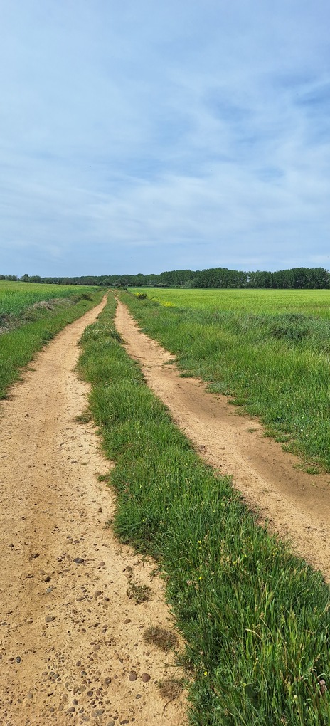 Poco tardé en llegar a CASTROJERIZ, porque la etapa HONTANAS-CASTROJERIZ es muy corta. No es un error, sino una estrategia. Esta año no podía hacer descansos de 2 días en los sitios habituales, porque tenía planificado acabar en Sarria y pasar 3 días en ARZUA, en Casa DAS CORREDOIRAS con mi marido, el cual no sabía nada del tema hasta unos días antes.