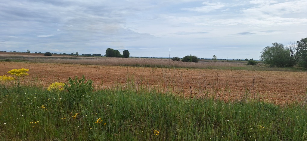 He de reconocer que hacía años que no peregrinaba más allá de Carrión de los Condes, saliendo de esta localidad en Autobús (ALSA) con destino León. Los 92km que hay de distancia corresponden a 4 etapas que son exageradamente monótonas, feas y con pocos servicios. Sigo pensando que no ha mejorado nada, en cuanto a servicios al peregrino, estos kilómetros y las opciones de hacer etapas menos largas es un imposible. Hay muchos tramos de asfalto, tramos largos entre campos que no nos permite poder ir al baño porque no hay ni árboles donde esconderse, ni áreas de servicio acondicionadas. Algunas antiguas mesas han quedado entre la maleza y en muy mal estado de conservación. No hay sombras a lo largo del camino, árboles que nos protejan del sol o donde poder sentarse bajo su sombra. Aquí no hay un empresario generoso con los peregrinos que patrocine el gasto de hacer unos bancos blancos de piedra para que podamos descansar. Tantas horas andando bajo un sol de justicia y no hablo ya lo que debe ser en Agosto¡¡¡…