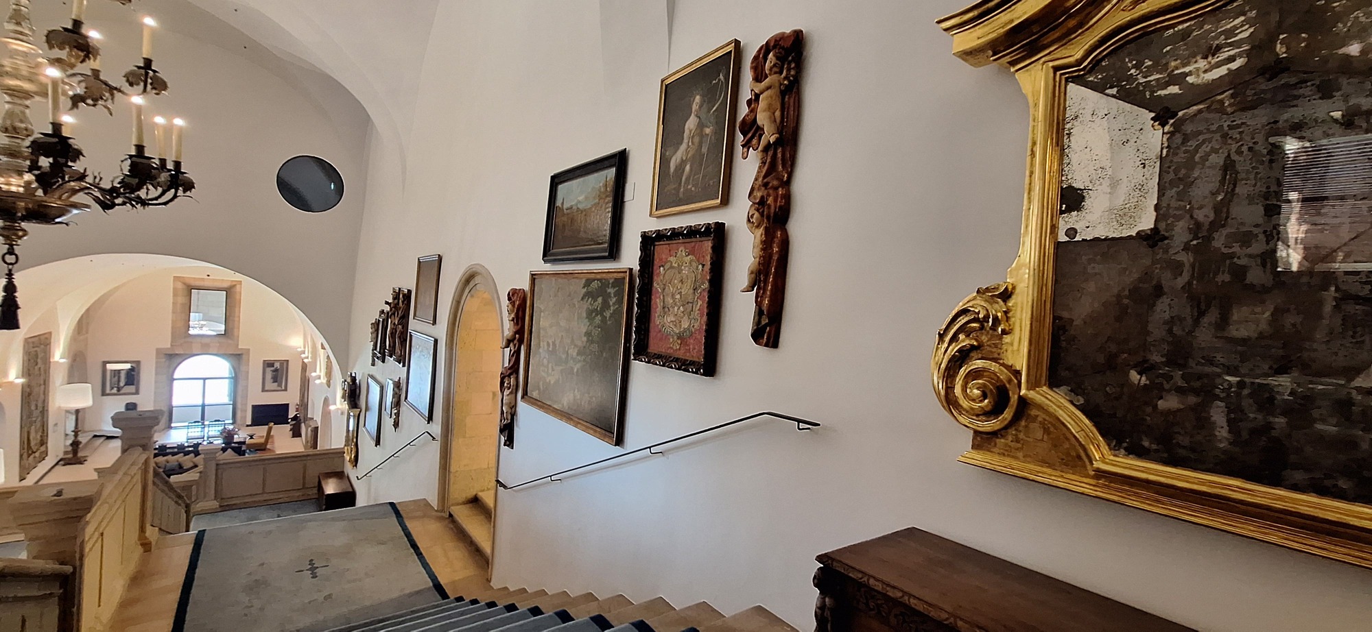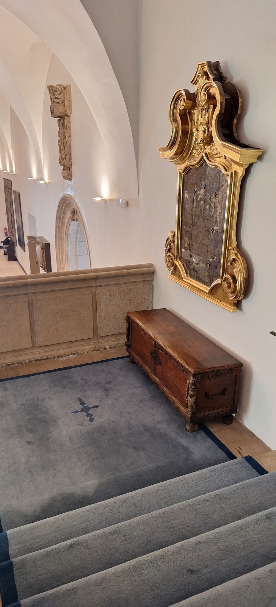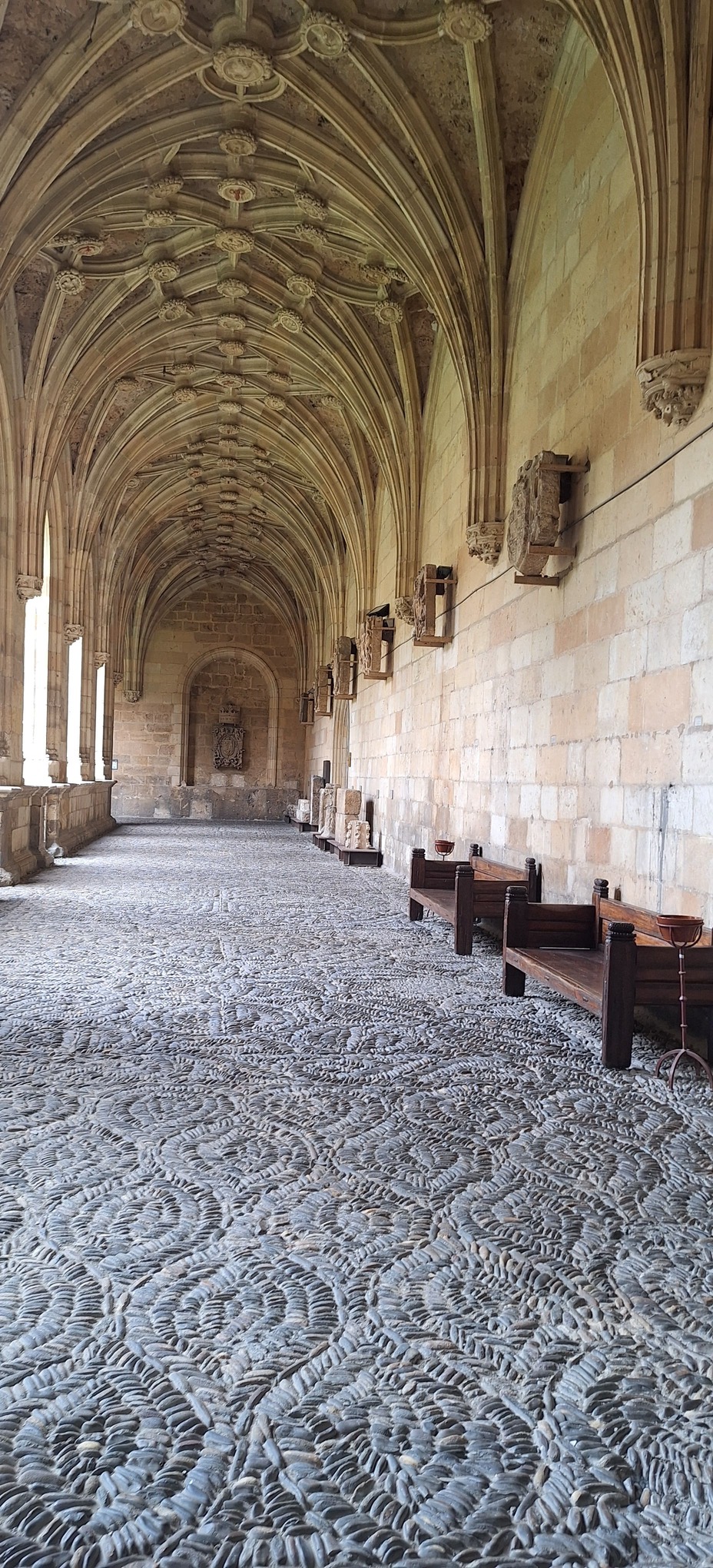 Y de nuevo, tarde de habitación y paseo por el Parador que tiene su historia propia, muy interesante, habiendo sido un lujoso albergue de Peregrinos en el S.XVI. Se halla en el interior del Convento de San Francisco, un hermoso Monasterio. Es un edifico de contrastes, con sus habitaciones con paredes de piedras, de colores rojo caldero y grises azulados, además tiene una colección artística clásica y la vez vanguardista, magníficos salones y lo que más aprecio en realidad, es que me dan la misma habitación con vistas a la salida del día siguiente, así que veo pasar a los más madrugadores cuando despierto, desde mi ventana de las banderas. En esta ocasión me dieron una habitación más amplia y tranquila. Me siento privilegiada en este lugar con tanto encanto¡¡¡