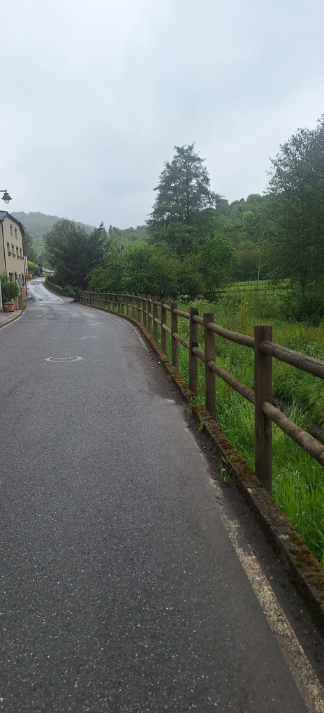 Después del desayuno del PARADOR, que tenía incluido en el precio, salí decidida a no abrumarme con el cemento que me esperaba. Es una etapa llana en la que nos desvían de la carretera tres veces para ver pequeñas poblaciones que quedan a la derecha del camino, por lo que atravesar esa vía se hace peligroso e innecesario. Hay áreas de descanso junto al Río Valcarce, que nos acompaña desde la salida hasta la llegada A VEGA DEL VALCARCE. En Ambasmestas, a escasos kilómetro y medio de VEGA DE VALVARCE, había quedado con mis amigos de CASA RURAL EL RECANTO Y PASTELERÍA CEREZALES para comer juntos. Cuando estaba llegando volvió la lluvia y el viento fresco, por lo que tuve que volver a ponerme la ropa adecuada sobre la que llevaba. Pero ya había acabado la etapa para mí porque volvía la Casa Rural con ellos en el coche.