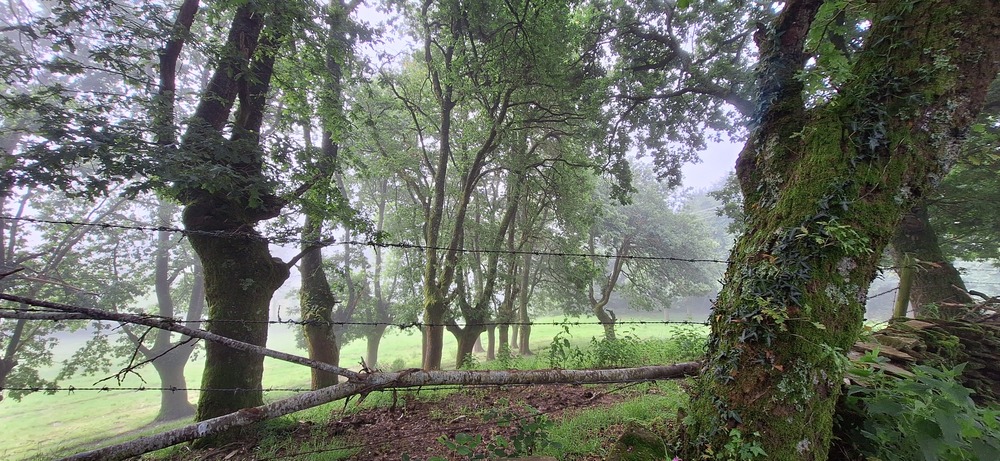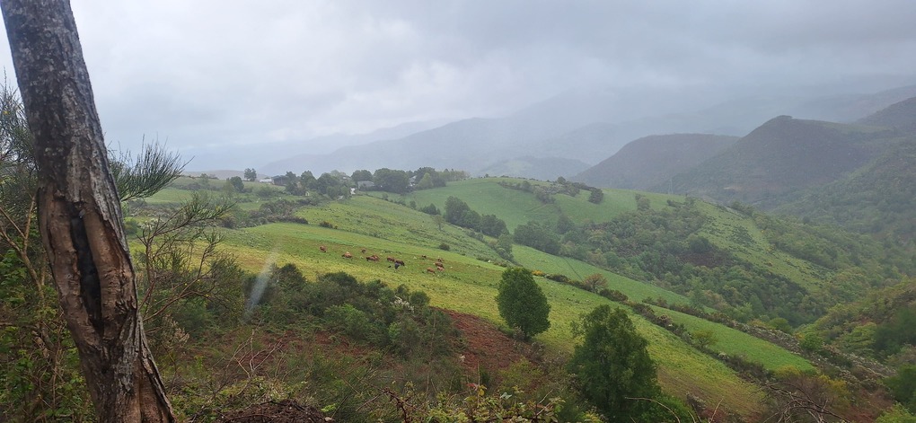 Como siempre digo, una imagen vale más que 1000 palabras. Impresionante. Variada porque pisamos asfalto, pero más por sendero, además senderos con unos balcones que hacen los árboles para ver el paisaje a medida que vamos descendiendo. Los campos, las vacas, los árboles, la frondosa vegetación, las paredes de piedras con musgo, el frescor que deja la lluvia en estos senderos, el olor sobretodo.