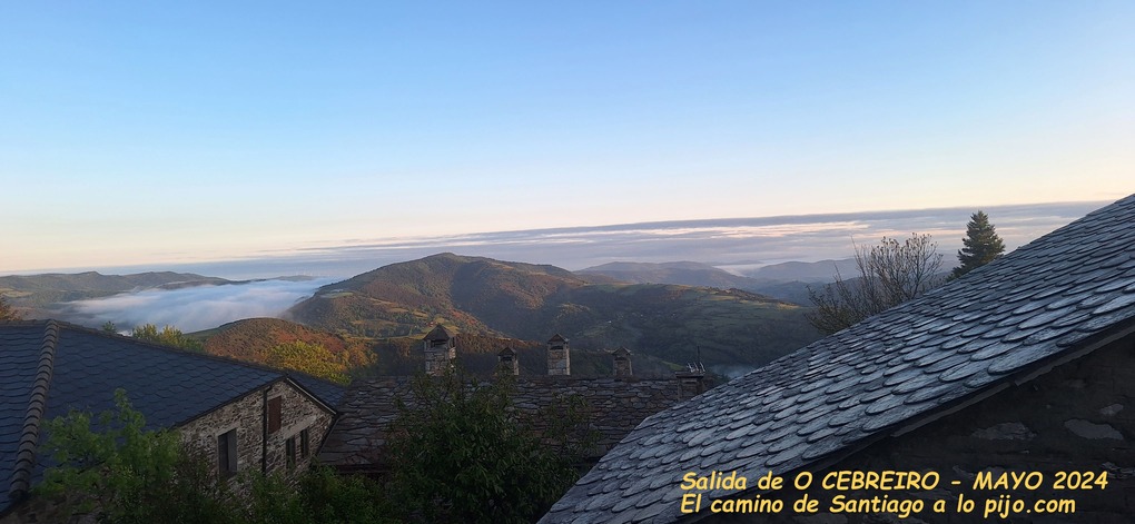 Ir por carretera me evitó llenarme de barro, porque aunque lo hayan arreglado, cosa que sé por Blanca, pero no he comprobado, me garantizó que seguía siendo un barnizal y llegaría llena de barro hasta los tobillos. Además subía ya acompañada por un matrimonio mexicano, Fabricio y Dulce a los que llevaba días coincidiendo y saludando, pero esta vez andamos charlando hasta la entrada de O Cebreiro y comimos juntos enHOTEL O CEBREIRO donde me alojo cada año. Curiosamente, la anécdota del día fue de lo más divertida que podría contar, pero fue el momento, difícil de escribir la situación, pero lo intentaré: