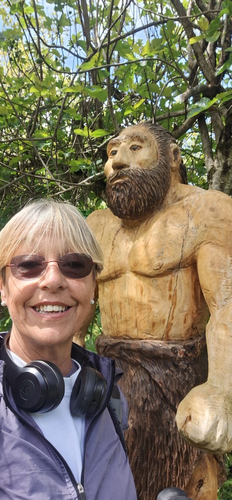 Después de pasar a saludar en AIRA DO CAMIÑO (Fillobal) al matrimonio que lo regenta, amigos , además, de Esther de Restaurante ESTHER. Le envié un mensaje con esta foto a ella porque nos conocemos desde hace 11 años y le puse al pie de la foto: – Ya estoy llegando, acompañada¡¡ (hacía alusión al gorila de madera detrás mío) y Esther me contesta: – Si has cambiado a tu marido por este, me quedo yo con tu marido¡¡¡