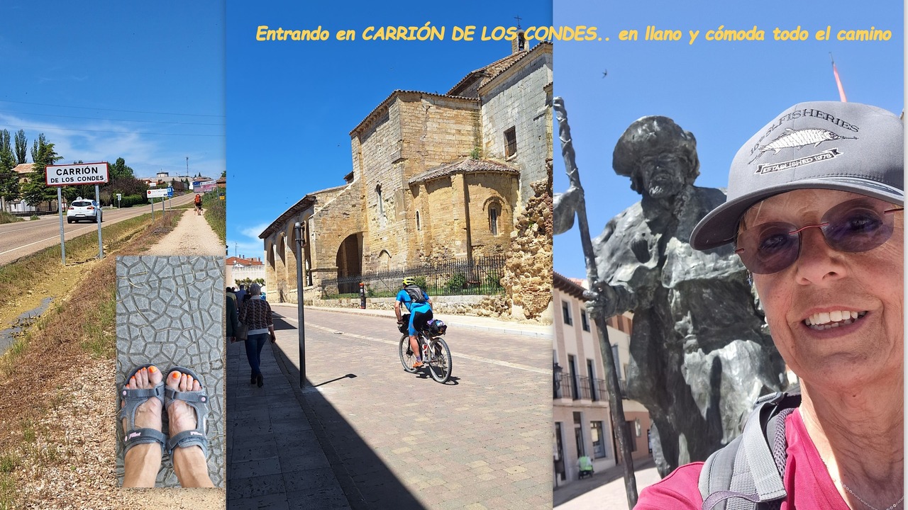 La llegada a Carrión se hace eterna, viendo desde el horizonte, junto a la carretera, la población pero cuando vas cansada, parece que en lugar de acercarte, se retira más y más la entrada. Aún tuve fuerzas para hacer unas fotos e inmortalizar el momento, pisando asfalto ya con chanquetas y sin calcetines, aterricé en el Mesón que hay en la calle principal, junto a la tienda de deportes donde trabaja mi amiga Victoria, que por cierto pude saludar, de pura casualidad, mientras tomaba una cerveza en un bar próximo al Mesón.