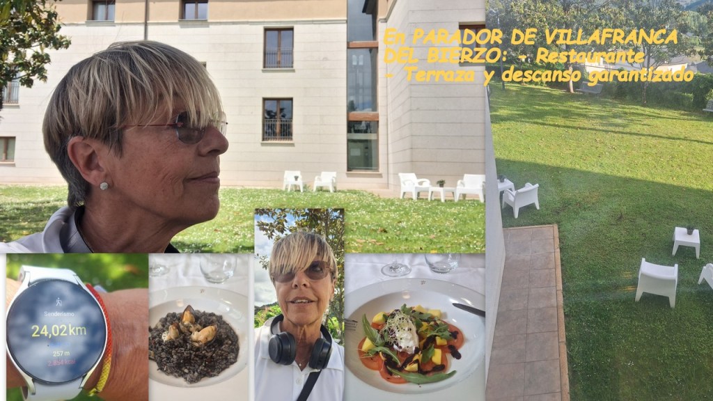Una vez más, pude comprar esa ensalada con salsa y tenedor del super y cenar en la habitación porque el tiempo era fresco y no me apetecía salir después del baño en el SPA del PARADOR y el GIN TONIC en la terraza, mientras me ponía al día con la Tablet, correo y redes sociales. Así que me retiré pronto para descansar y esperar a que amaneciera ya totalmente recuperada de la etapa del día anterior.
