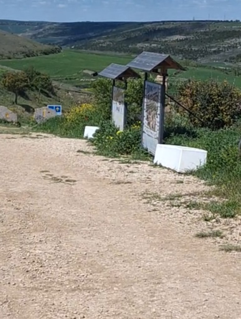 Si este año me ha sorprendido algo en este peregrinaje, ha sido en HONTANAS, o mejor dicho, de camino en los últimos kilómetros antes de entrar en esta población y una vez ahí. La sorprendente iniciativa de un empresario local que nos ha puesto (de su bolsillo) bancos, si, bancos de piedra BLANCOS en el el sendero por el que llegamos andando los peregrinos, sin sombras, sin bares, sin aldeas ni pueblos intermedios. Así que llegué a Hontanas con la intención de escribir al Ayuntamiento para agradecer esos BANCOS BLANCOS….. y la hija del empresario, que servía en el BAR PUNTIDO, me dijo que fue cosa de su padre lo de los BANCOS BLANCOS. Tan sólo puedo darles las GRACIAS.