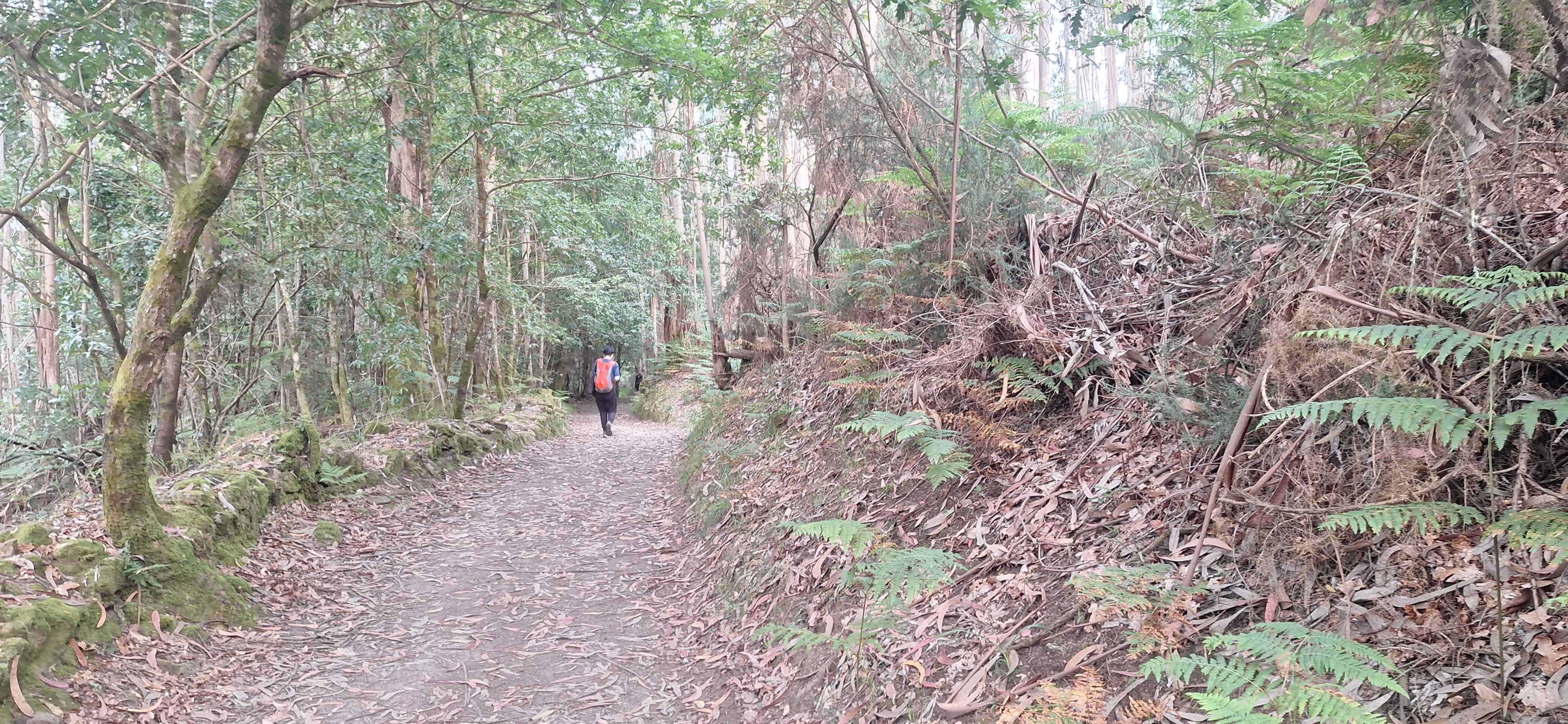 Como todas las salidas de población, subida para empezar el día. Pero con ganas, las subidas, se suben solas, prácticamente. Entre bosques de Eucaliptus y sendero cómodo, hasta llegar a la primera población, después de pasar por el Alto do Vento.
