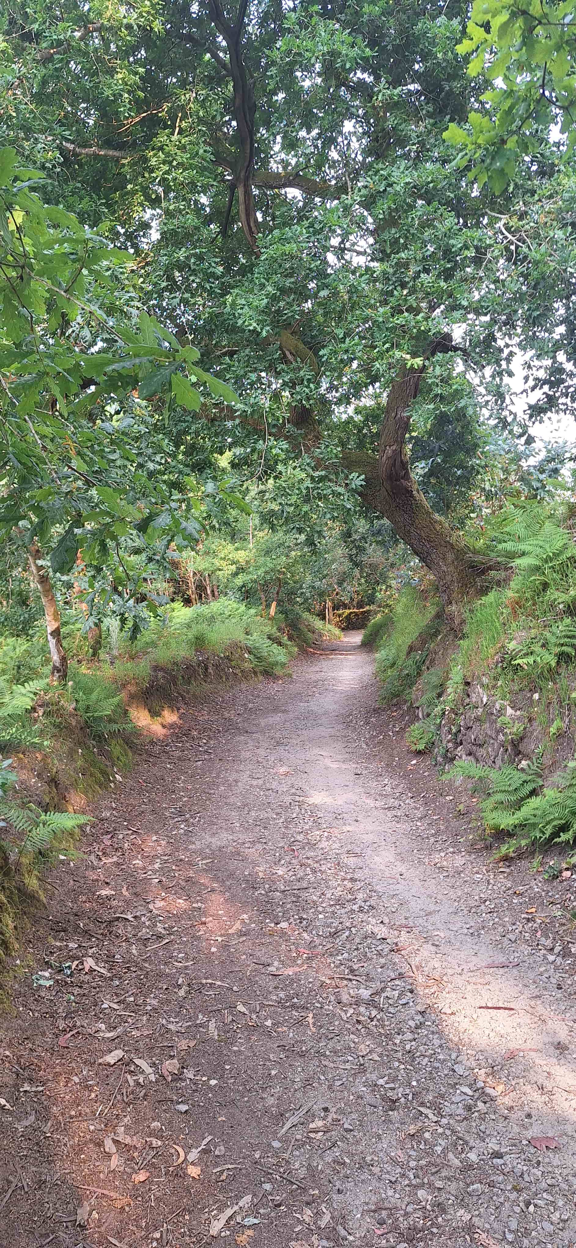 En mi caso, había cargado la mochila con algunas cosas caprichosas para comer por el camino algo antes de llegar a Negreira, así que fui haciendo paradas y fotos a lo largo del recorrido, disfrutando muchísimo del paisaje. Me sorprendí porque el recuerdo que tenía de esta etapa era muy amargo y con muchísimo asfalto, porque no supieron seguir las pocas señales que en aquella época habían al hacer el camino a la inversa. Pero gracias a Dios, esta vez, ando feliz por poder disfrutar del recorrido que ni es duro, de momento ni es cansado.