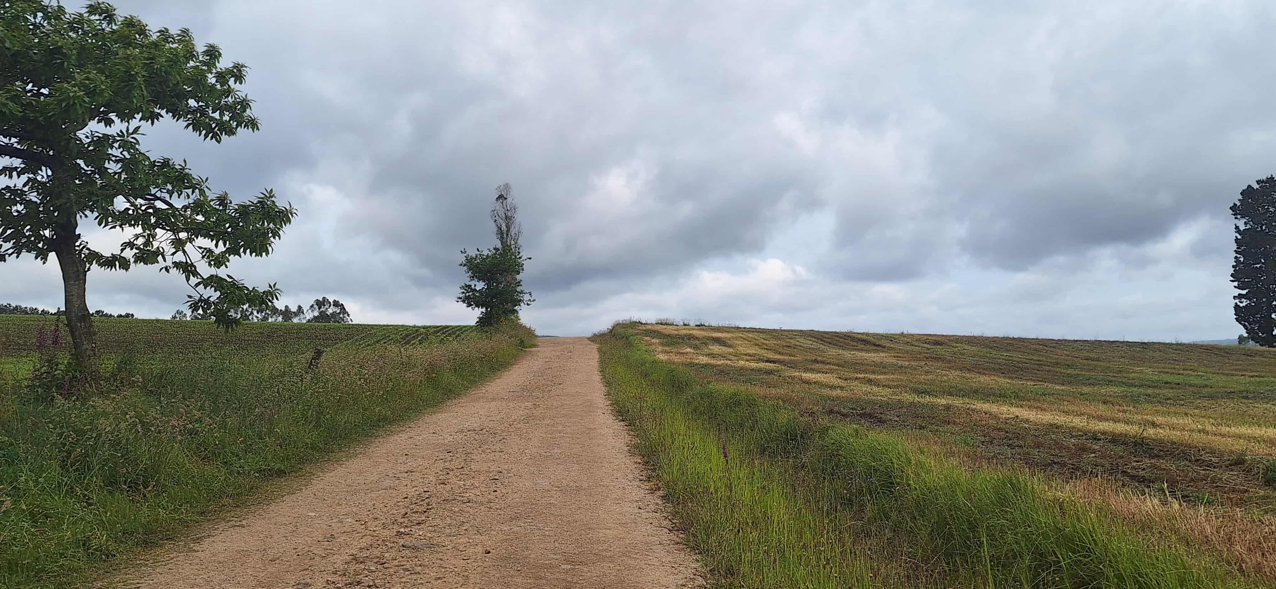 El día era horrible en los primeros momentos, pero poco a poco se despejó el cielo y me dio un respiro. También llevaba en la mochila algo de comer que compré al salir de NEGREIRA, porque sospechaba que a lo largo de los 34km sería mejor no parar para llegar a destino sobre las 16h si mantenía un buen ritmo caminando.