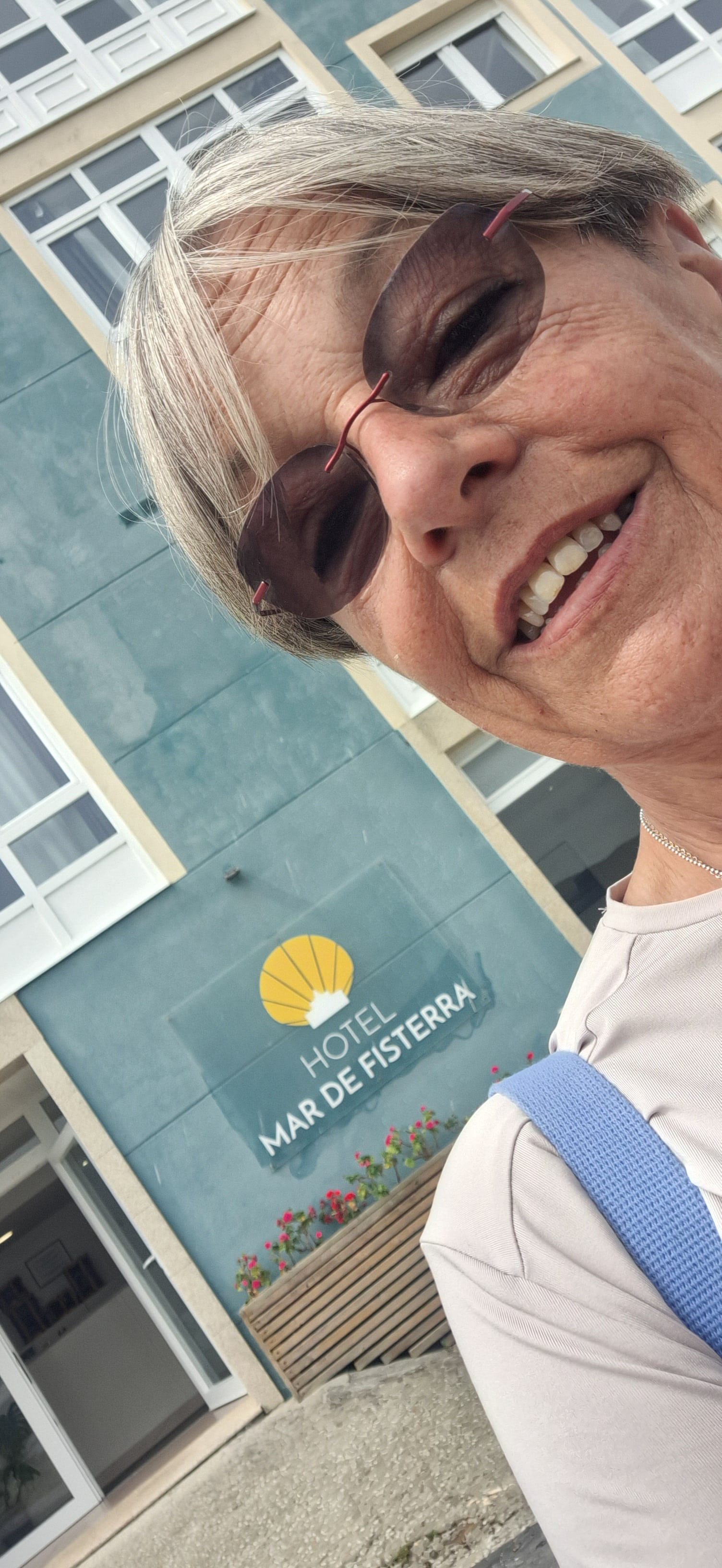 El lugar elegido para mi estancia en FISTERRA era HOTEL MAR DE FISTERRA, en la Playa de Langosteira. Un Hotel bastante nuevo, con habitaciones con vistas al mar y la playa. Con una recepcionista encantadora y sumamente amable a la que deseo la mejor suerte del mundo en su vida. Agradecida por su atención y consejos. Me orientó para la salida del día siguiente, porque volvía a Santiago de Compostela en Autobús, y resulta que cerca del Hotel hay una parada que me evitó hacer la espera en el centro de Fisterra. He de añadir que me impresionó el Hotel. Muy limpio, con muchísima claridad, gracias al gran ventanal que tienen las habitaciones que son grandes y espaciosas. Además pude plancharme el vestido, porque en el armario había hasta plancha. Muy recomendable y disponen de apartamentos de verano, para ir en familia.